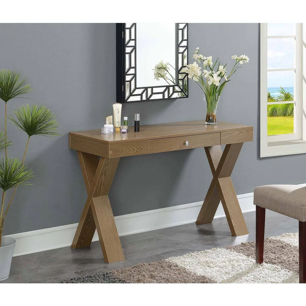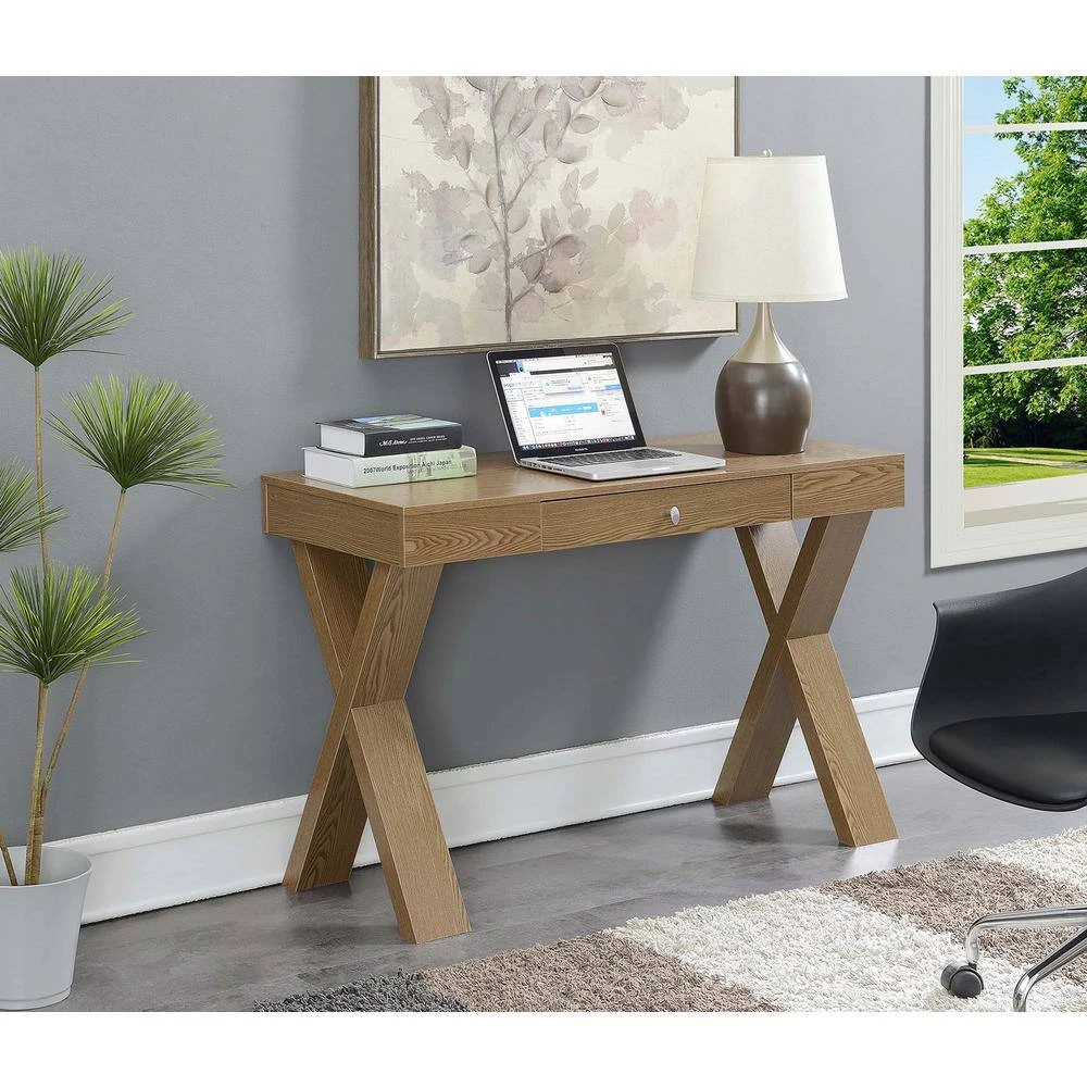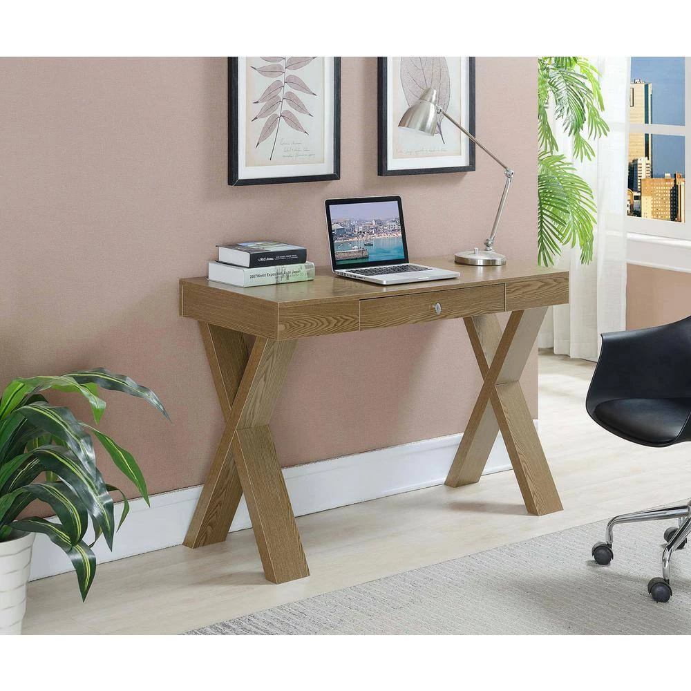 Available in multiple finishes, you’re bound to find the perfect Convenience Concepts Newport Desk to fit into your home. Featuring a spacious desktop surface that is great for computing or writing, you’ll be sure to finish any project or assignment that comes your way. The sleek sliding single drawer with a stainless steel pull, offers plenty of room to store your pens, paper and other miscellaneous office supplies. With beautiful X legs, not only is the Newport Desk fully functional, it’s a statement piece as well.