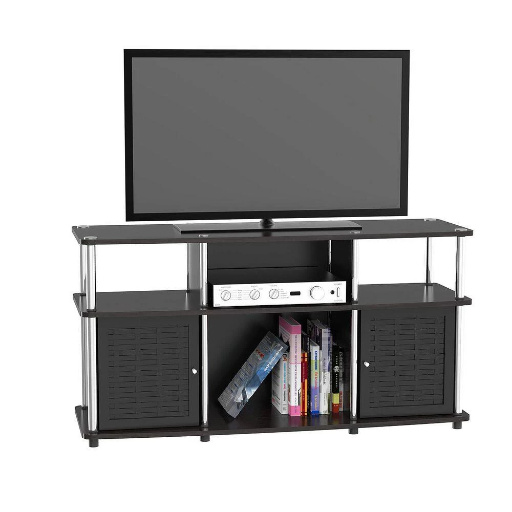 The Designs2Go Chelsea TV stand has a modern design with its rich espresso finish and weaved bamboo doors. There are 6 spacious storage compartments to keep all your media components looking neat and organized. This TV stand is a great choice for any living room.