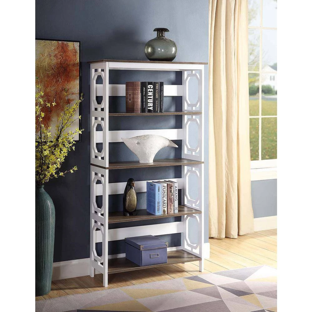 Functional and stylish, the Omega 5 Tier Bookcase by Convenience Concepts is the must-have furniture piece for your home. With a sleek contemporary style, it will update any decor . The geometric side panels provide a unique and fashionable look to any room. With five ample shelves, you have more than enough space to store your books or display your favorite collectibles. Constructed from MDF and finished with a non-lead based paint, this unit is built to last and was created with your safety in mind. Enjoy right after delivery with its easy assembly of only 7 easy steps. Available in multiple finishes. Complete the look with additional furniture pieces from the Omega Collection by Convenience Concepts. Each sold separately.