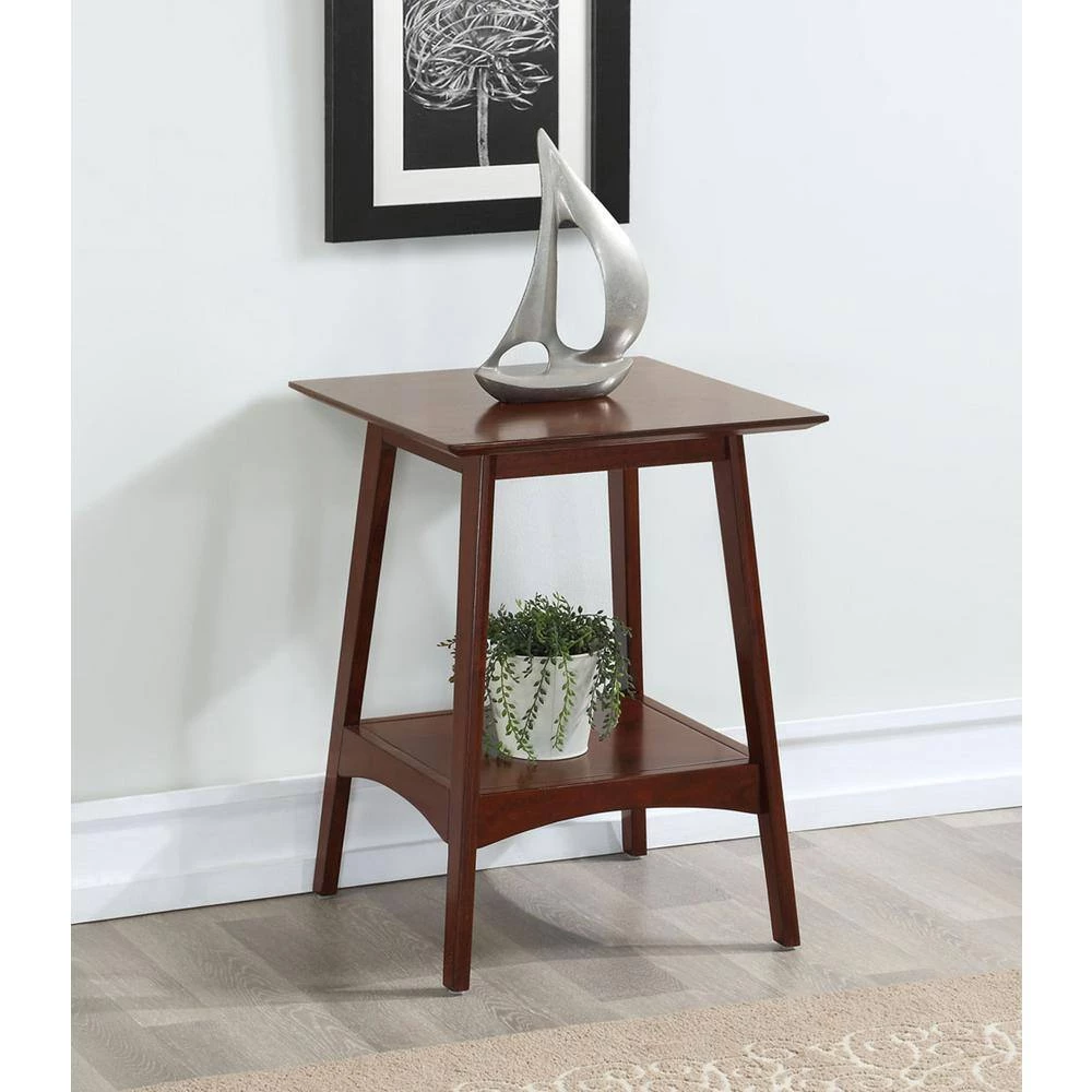 Bring the essence of the alps to your home with the Alpine End Table from Convenience Concepts. With a mid-century modern style, this side table will refresh any living room or home decor. This accent table with a shelf features an open concept design that will optimize both storage and display space in any room. The ample table top is crafted from MDF and finished with a non-lead based paint ensuring this bedside table beats the test of time and provides the convenience of easy maintenance. Enjoy the Alpine End Table in no time with its two-step easy assembly. The Alpine End Table is also available in multiple finishes. Look for additional pieces from the Alpine Collection from Convenience Concepts, each sold separately.