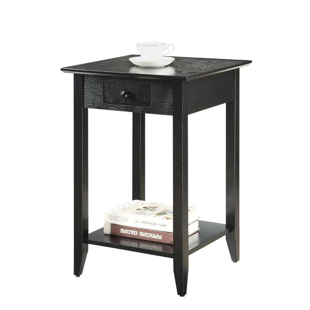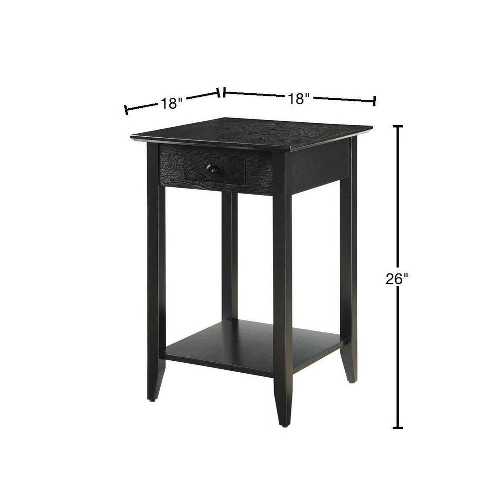 The American Heritage End Table is great addition to any home and will complement any decor. This end table offers one drawer that provides enough space for small accessories such as keys and remotes. There is also an open lower shelf that gives you more room to use for display or storage.
