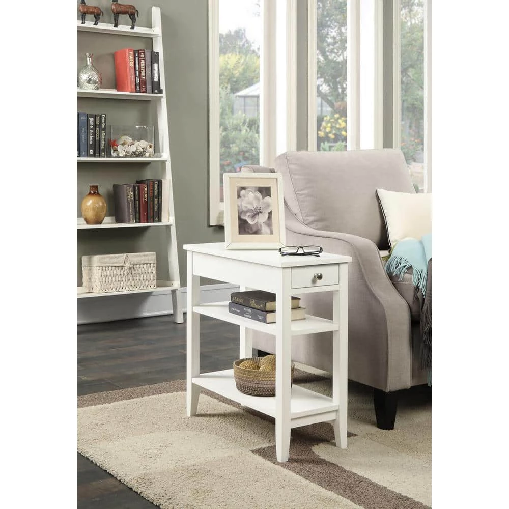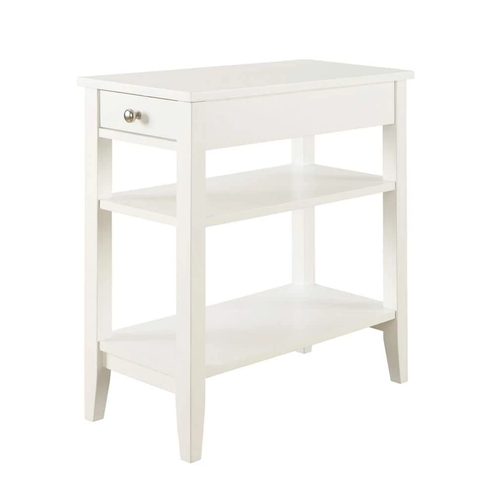 The American Heritage 3 Tier End Table is the perfect complement to any home. Featuring a drawer for hidden storage, you can hide away unsightly controls and accessories. Also featuring a middle and bottom shelf, you will have plenty of space to display collectibles, or store magazines. Available in multiple finishes this piece will complete the look of any home decor.