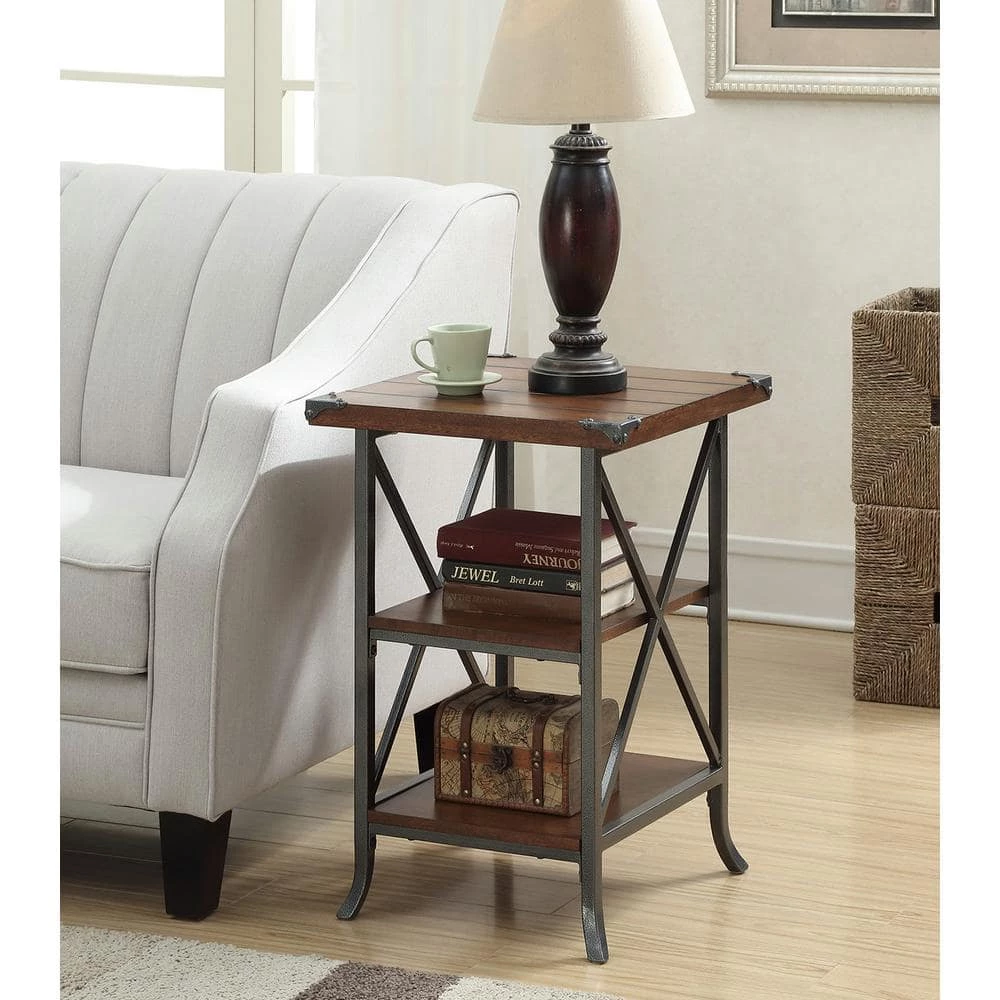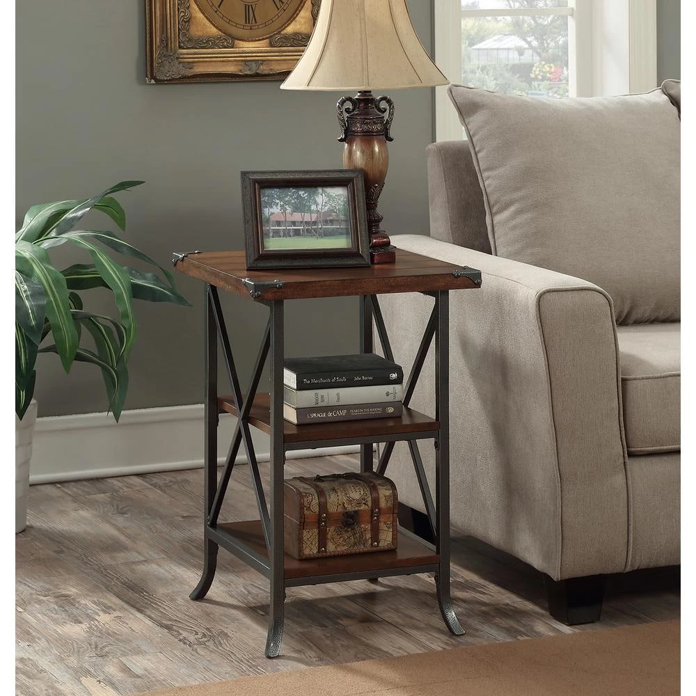 Give your space a charming makeover with the Brookline End Table by Convenience Concepts. Featuring a grooved top panel paired with decorative metal corner protectors that give this piece elegant character. Both the middle and bottom shelves allow plenty of space for you to store and display your favorite collectibles. Constructed from a powder coated metal frame with slightly scrolled feet ensures that this piece will guarantee style and stability.