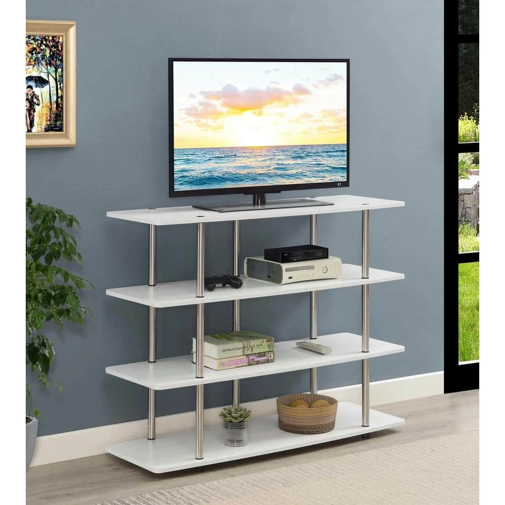 The Designs2Go XL Highboy 4 Tier TV Stand is the perfect complement to any new or existing decor. Available in multiple finishes; this TV stand features 4 tiers of shelving. Whether you are a gaming or movie enthusiast; you will have plenty of space for all of your media needs with this highboy. The steel poles add plenty of durability; and will not ever rust; also making assembly a breeze.