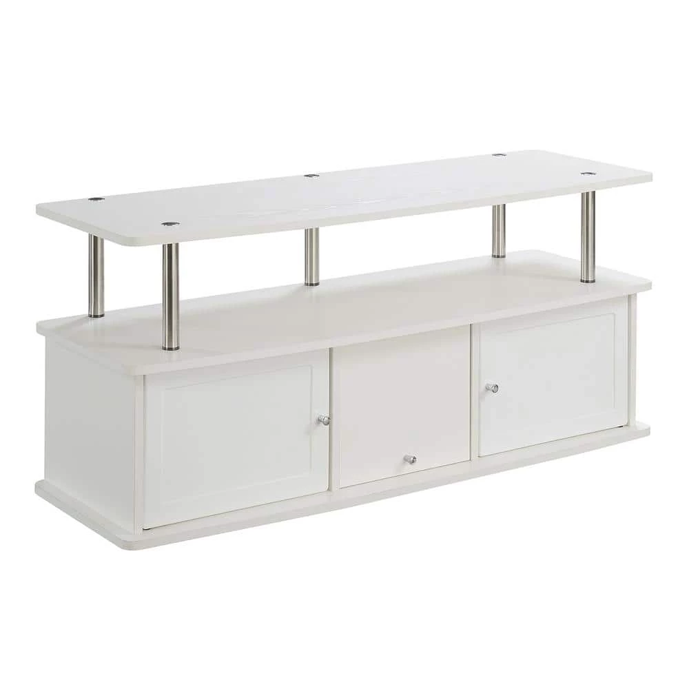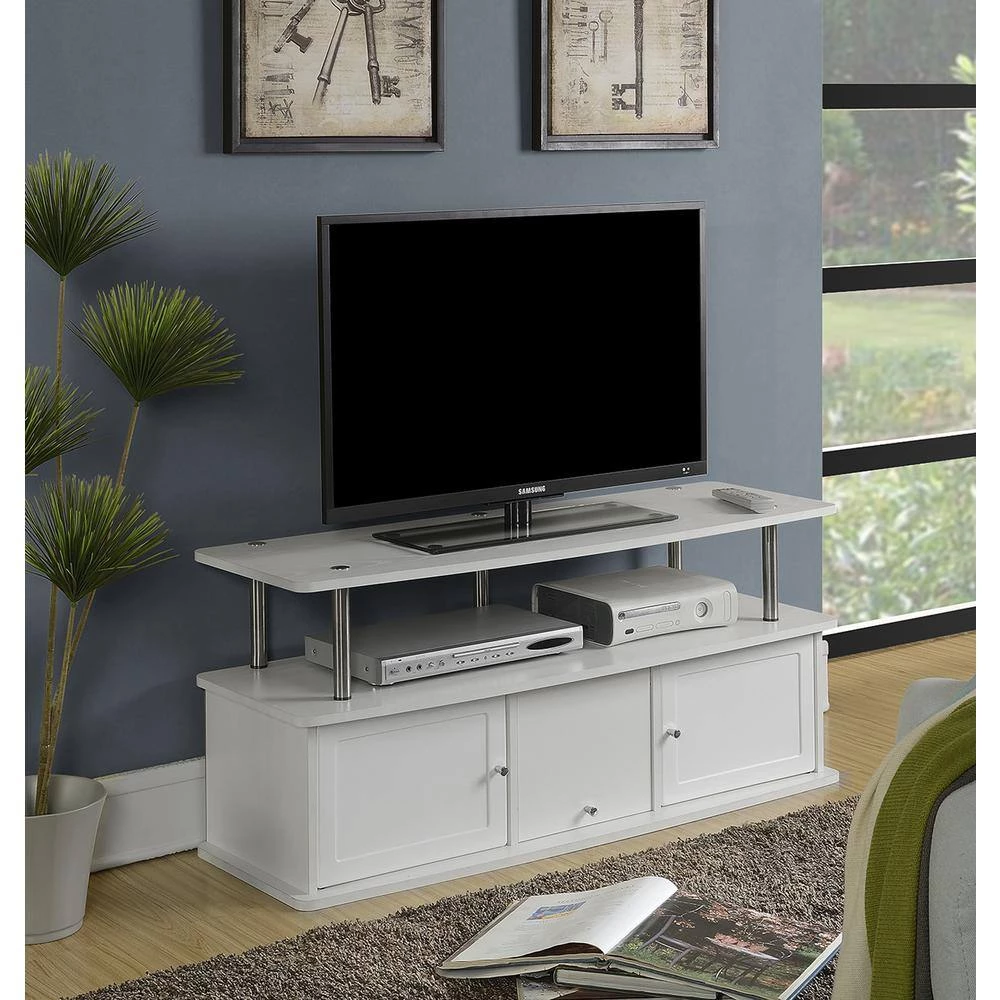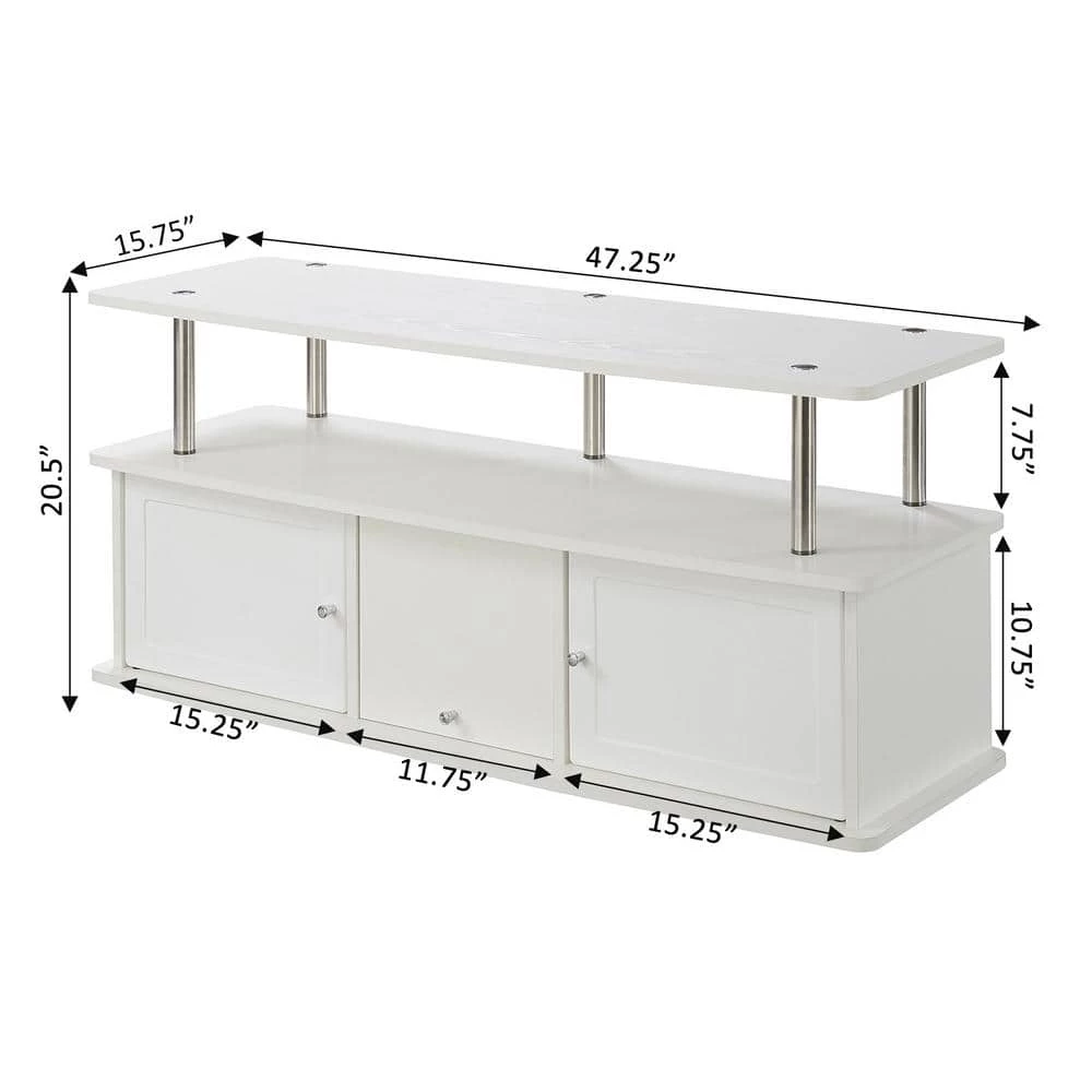 Modern styling is the essence of the Designs2Go TV Stand with 3 Cabinets. The closed storage cabinets keep your equipment looking neat. You’ll have plenty of space for TV, media, DVD Player and other components. Available in multiple finishes, this TV stand will be sure to complete the look of any decor.