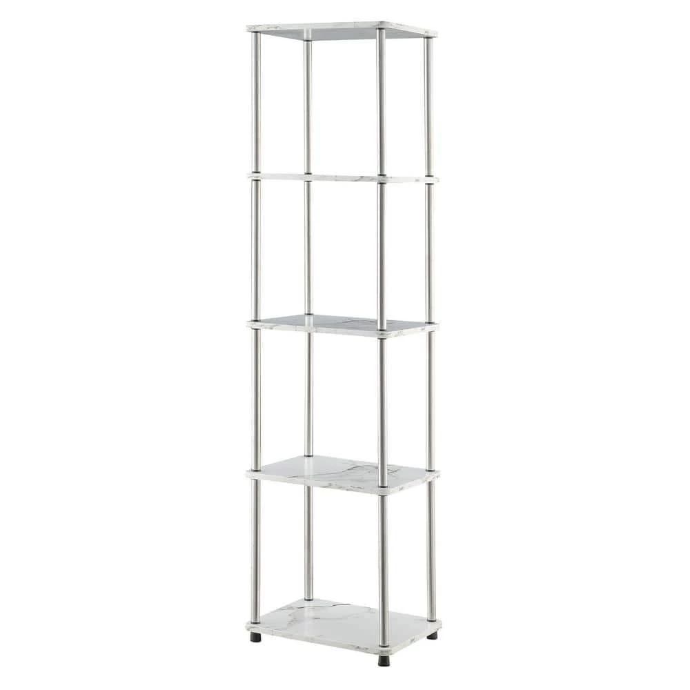 The Designs2Go No Tools 5 Tier Tower makes the perfect contemporary addition to any living space. Featuring 5 tiers of sturdy shelving made from particle board and finished with melamine. Four stainless steel legs will provide additional stability and will not warp or rust. With easy assembly and little maintenance needed; this No Tools 5 Tier Tower can be used in any room; including the bathroom. Plenty of surface space is available for storage or display. Complete this modern look by shopping the entire Designs2Go No Tools collection by Convenience Concepts; each sold separately.