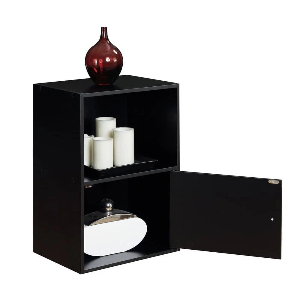 These versatile cabinets are perfect for XTRA Storage and display. Create your own unique design by stacking multiple units. Easy to assemble with household tools. Wipe with dry cloth to keep clean. 1 Open compartment with 1 closed door compartments that feature chrome knobs and magnetic hinges.