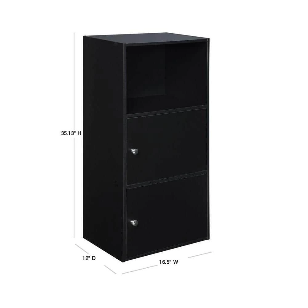 These versatile cabinets are perfect for XTRA Storage and display. Create your own unique design by stacking multiple units. Easy to assemble with household tools. Wipe with dry cloth to keep clean. 1 Open compartment with 2 closed door compartments that feature chrome knobs and magnetic hinges.