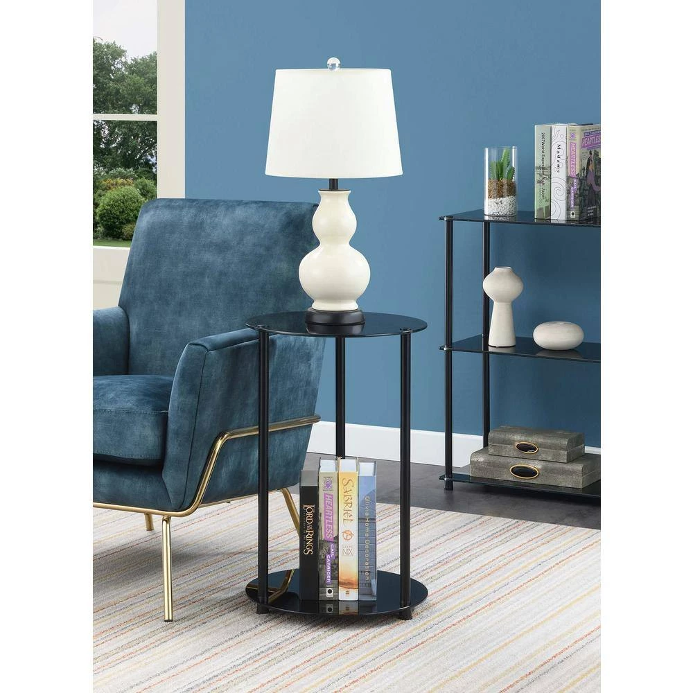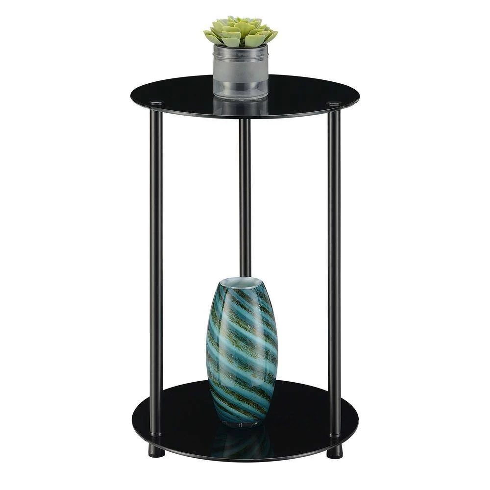 The Designs2Go Classic Glass 2 Tier Round End Table makes the perfect contemporary addition to any living space in your home. The modern style of this classic round end table enhances the aesthetic appeal of this fixture. The shelves are made from tempered glass; making this table stylish and sturdy. Three stainless legs will provide additional stability and will not warp or rust. With easy assembly and little maintenance needed; this Classic Glass 2 Tier Round End Table can be used in any room including the bathroom. Complete your modern look by shopping the entire Designs2Go Classic Glass collection by Convenience Concepts; each sold separately.