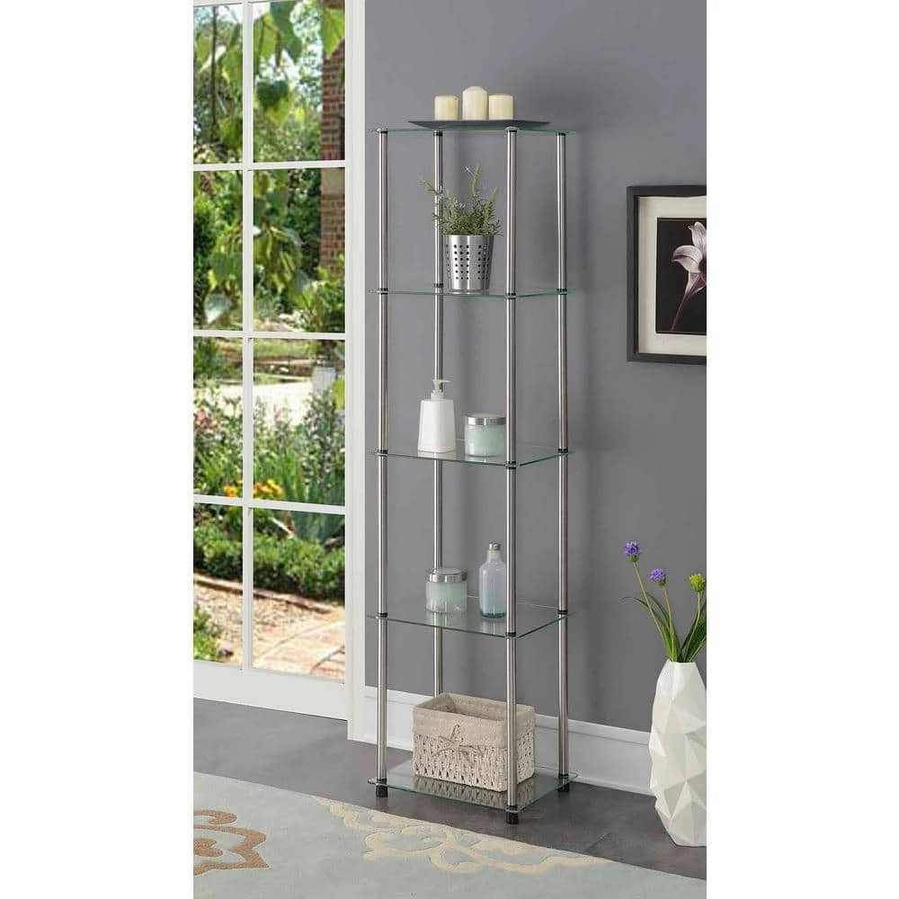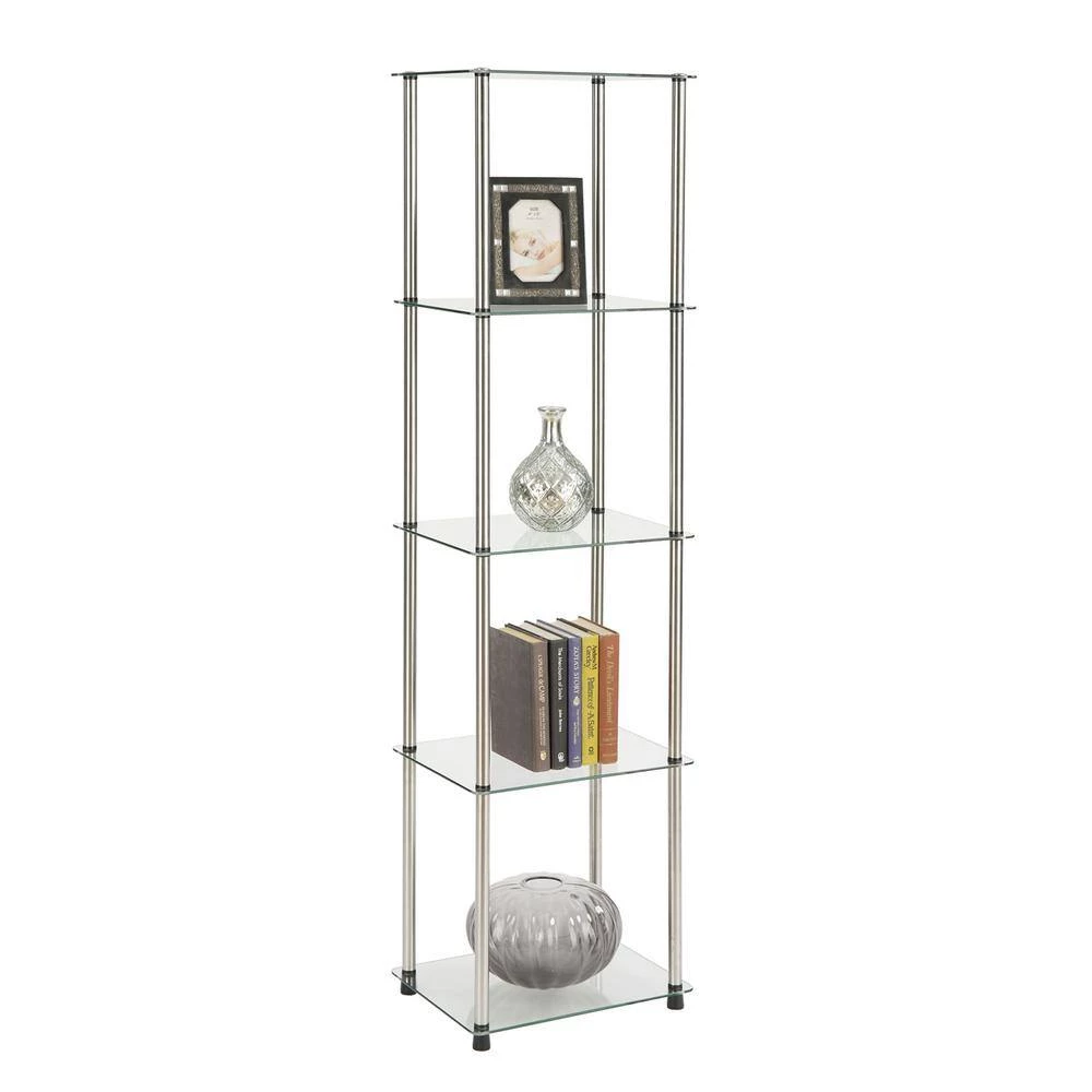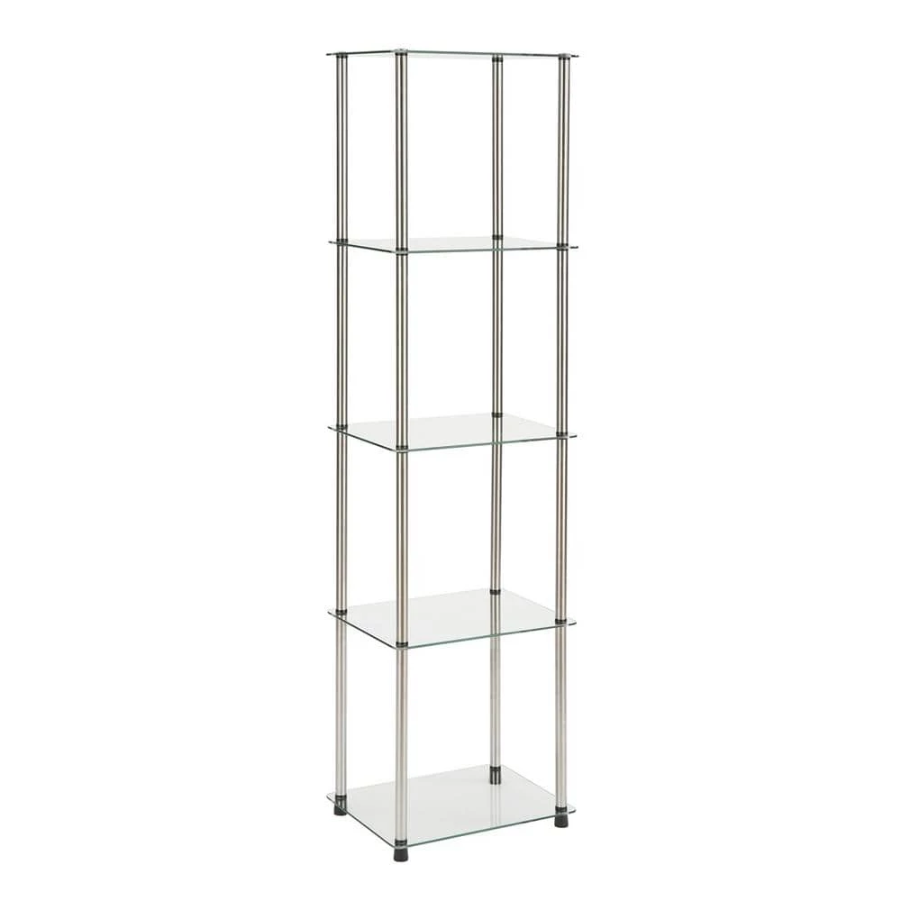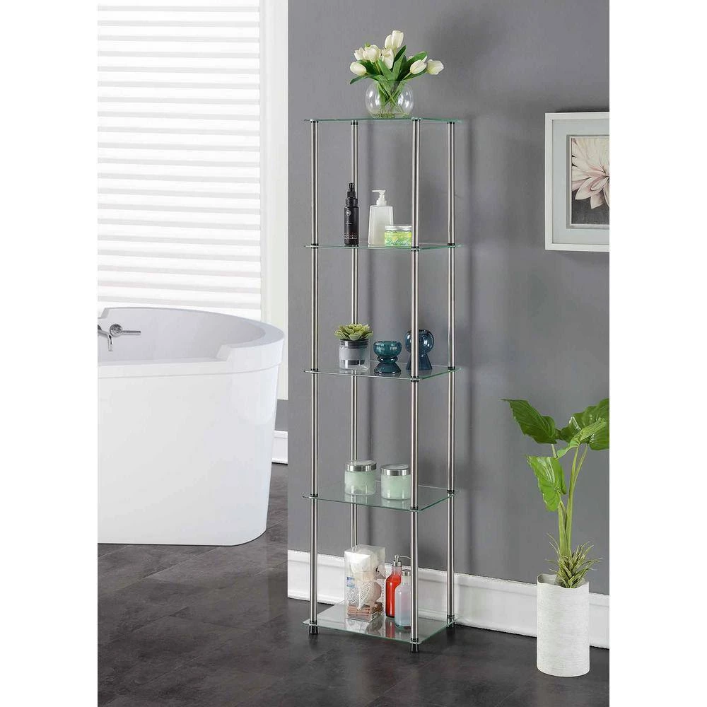 The Designs2Go Classic Glass 5 Tier Tower makes the perfect contemporary addition to any living space in your home. The modern style of this five-tier tower enhances the aesthetic appeal of this fixture. The shelves are made from tempered glass; making this tower stylish and sturdy. With five shelves; display and decorative options are endless. The four stainless legs will provide additional stability and will not warp or rust. With easy assembly and little maintenance needed; this Classic Glass 5 Tier Tower can be used in any room including the bathroom. Complete your modern look by shopping the entire Designs2Go Classic Glass collection by Convenience Concepts; each sold separately.