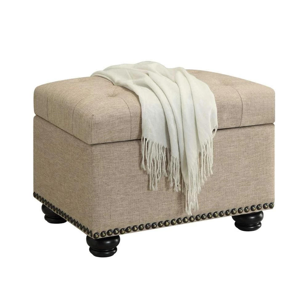 The Designs4Comfort 5th Avenue Storage Ottoman by Convenience Concepts will bring style and functionality to any room in your home. This elegant ottoman showcases a gorgeous button tufted hinged lid paired perfectly with the accented nailhead trim. Open the hinged lid to reveal the perfect amount of storage to keep your space clutter free. The solid wood turned feet ensure that this piece will be as reliable as it is beautiful. Available in a variety of finishes and fabrics from faux leather to velvet there is sure to be a finish that will fit the comfort of your home.