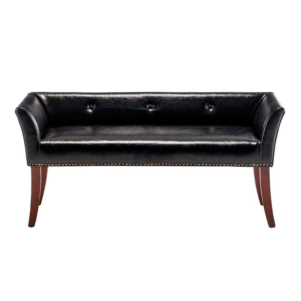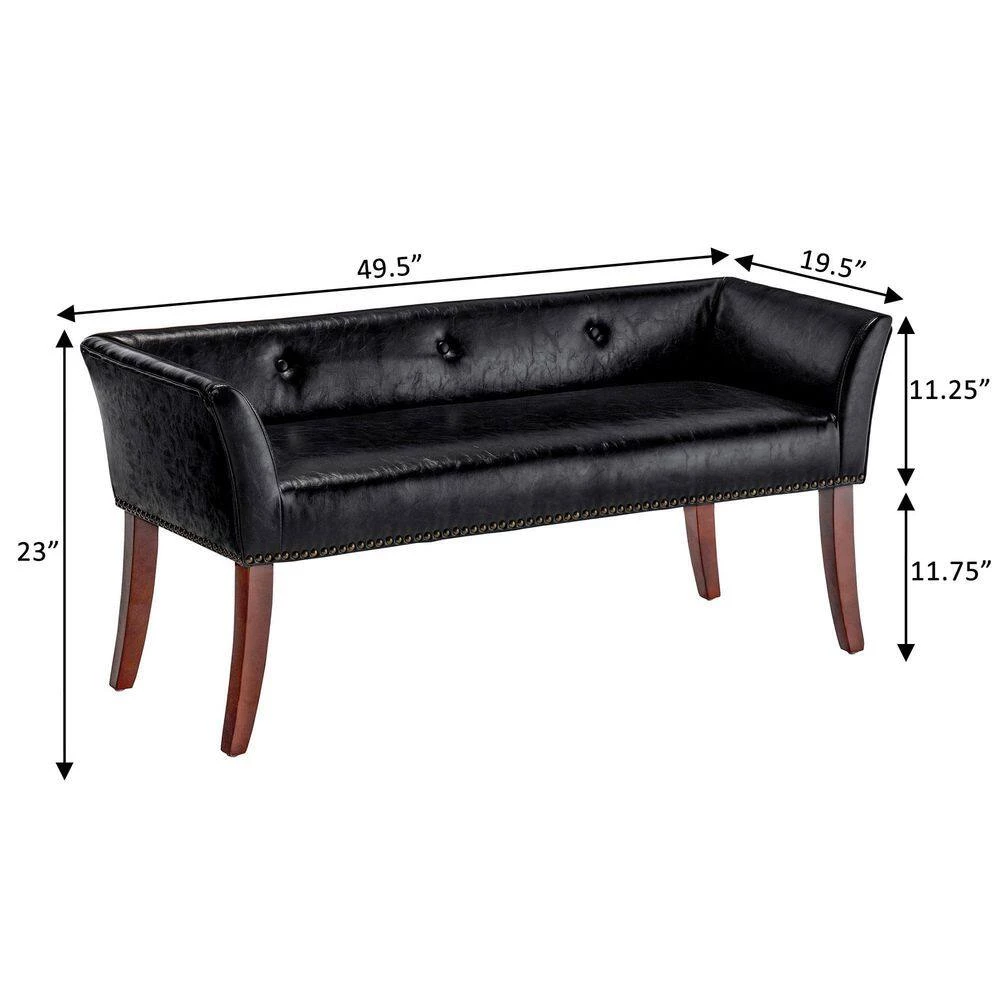 Decorate your home with the contemporary style of the Design4Comfort Gabriella Bench Ottoman by Convenience Concepts. Place this bench in the entryway to put on your shoes or display in the bedroom as a beautiful accent piece. Elegant armrests, fine stitching, and the sleek tufted backrest make for the perfect amount of luxury and sophistication in any room. This transitional piece is upholstered in a detailed luxurious faux leather, styled with beautiful nailhead trim, and filled with high-density padded foam cushions for maximum comfort. The large frame is engineered from pine wood while the smooth sturdy espresso legs are built from solid rubberwood. Assembly is very simple with this unique unit arriving almost fully assembled with only the legs needing to be attached. With two luxe finishes to choose from, you are sure to find a Design4Comfort Gabriella Bench Ottoman to coordinate with your home decor.