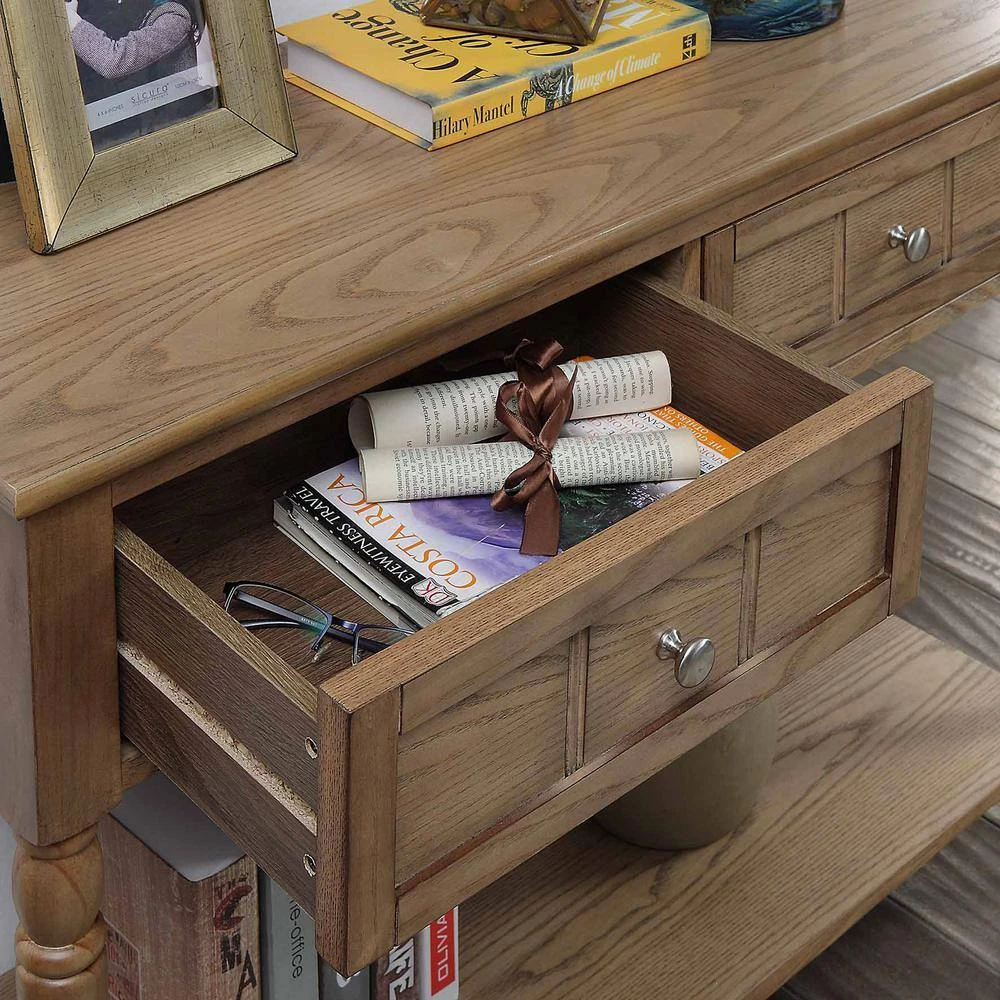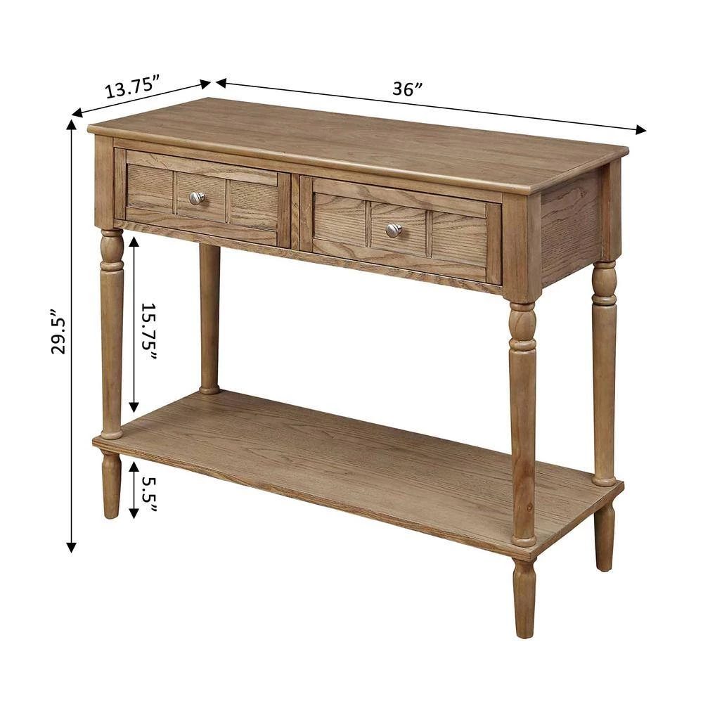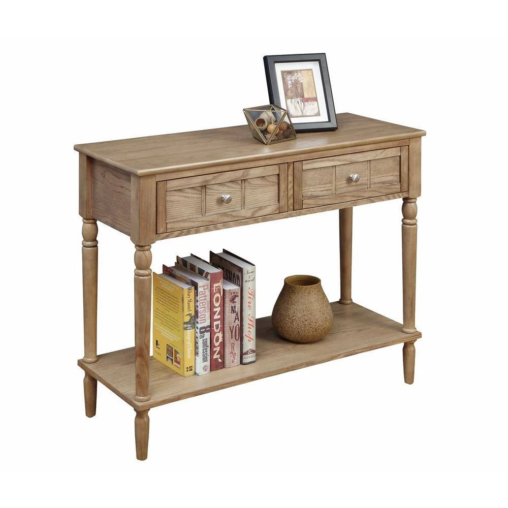 The French Country 2-Drawer Hall Table is the perfect combination of sophistication and elegance. Featuring 2-drawers for concealed storage and an open bottom shelf; you can hide away small odds and ends and display books to baskets. Beautifully crafted; the French Country 2-Drawer Hall Table also boasts a real wood veneer as you can see the details in the wood grain finish. The beveled table top edge; carved drawer; stainless steel knobs and sculpted turned legs offers the style that you were looking to add to your home. Available in multiple finishes the French Country 2-Drawer Hall Table will fit beautifully with your existing home decor. Look for additional coordinating pieces available from Convenience Concept the French Country Collection.