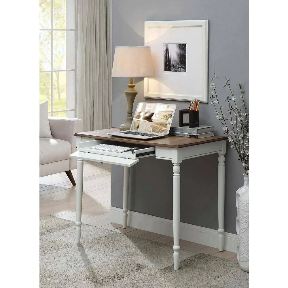The French Country Desk offers a refreshing look with a classic touch. The 36 in. workspace is the perfect size for any project and the keyboard tray allows for easy storage. This piece offers beautifully sculpted legs and clean lines that will become a staple in your home. Available in multiple finishes this is a sturdy piece that is perfect for any home office.