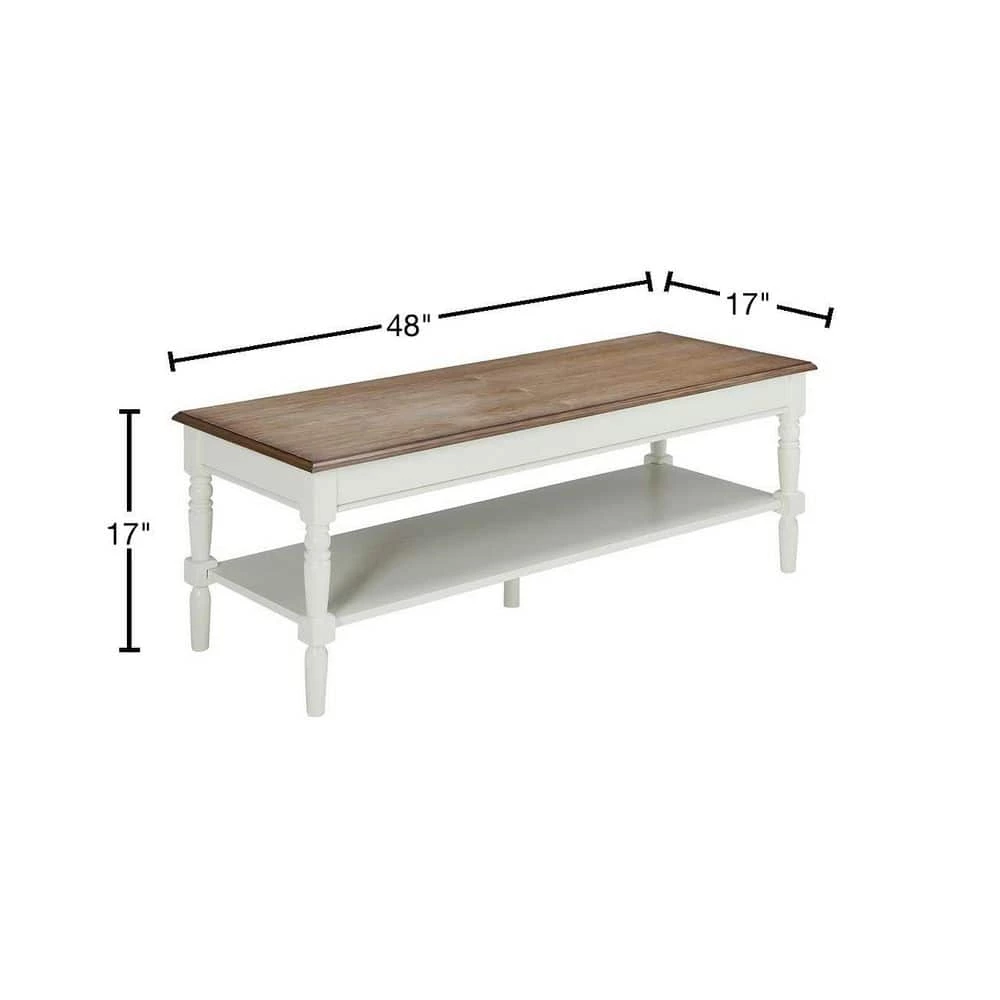 Upgrade the look of your living room with the Convenience Concepts French Country Coffee Table. With a modern style, this coffee table will be an aesthetically appealing addition to your living space. It features a bottom shelf, providing an on-trend solution for keeping any space organized. Made of wood, this coffee table has visual appeal that complements any design scheme.