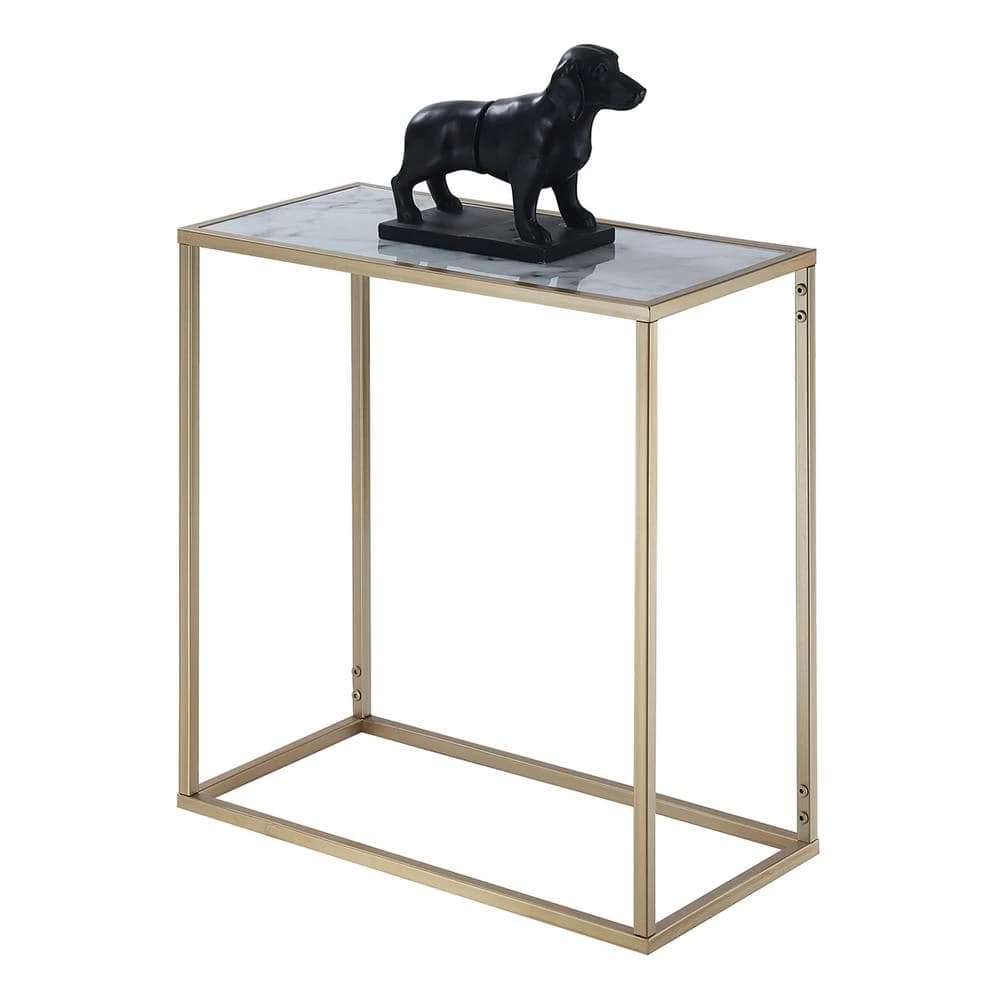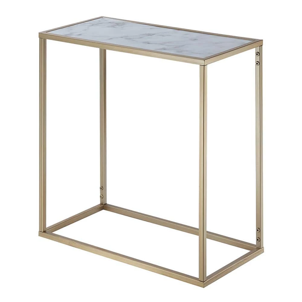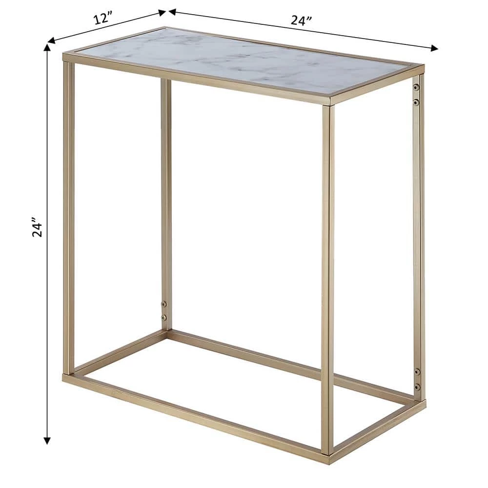 The Gold Coast Faux Marble Chairside End Table combines Victorian and modern concepts. The smooth faux marble table top paired with clean lines create a crisp look. The open breezy feel of this table completes the look. This table also features quick and easy assembly. Available in multiple finishes this piece will easily complement any new or existing decor. Look for other items from the Gold Collection sold separately.