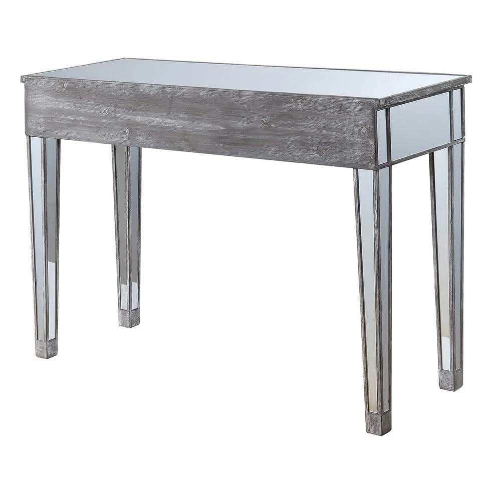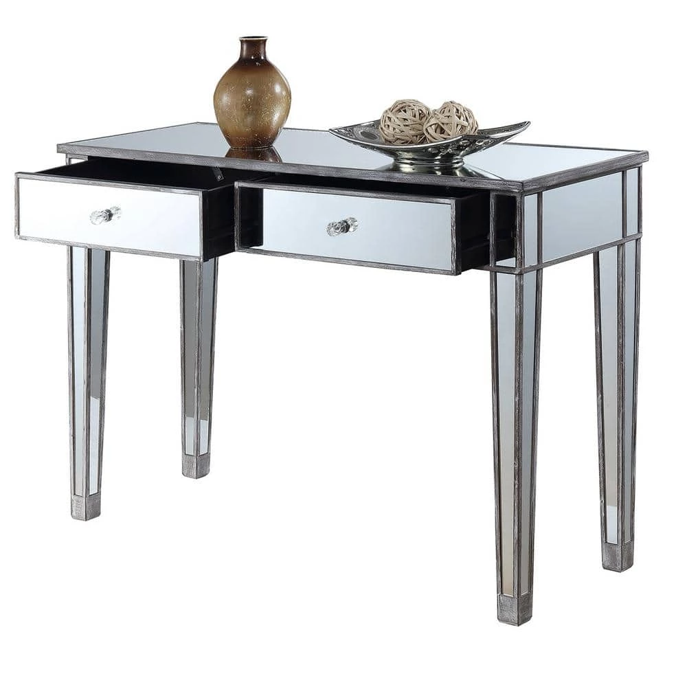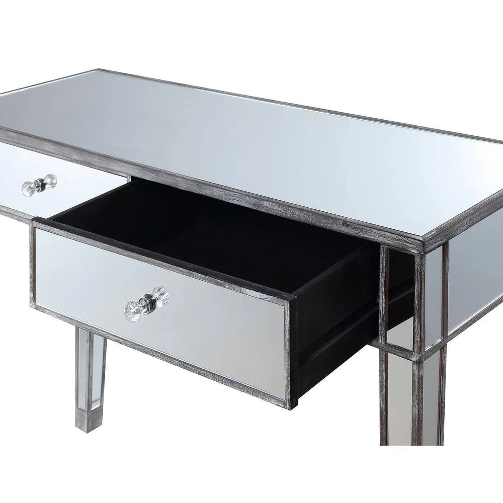 The classy yet contemporary styling of the Gold Coast Mirrored Desk will bring life to any space. The glass mirror inlay pairs perfectly with everything. The faux crystal drawer pulls bring the look together giving you access to the 2-drawers providing concealed storage. Look for other pieces from the Gold Coast Collection sold separately.
