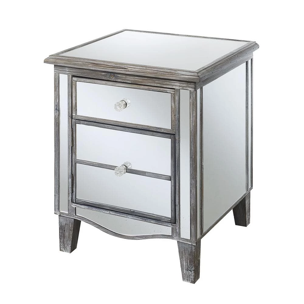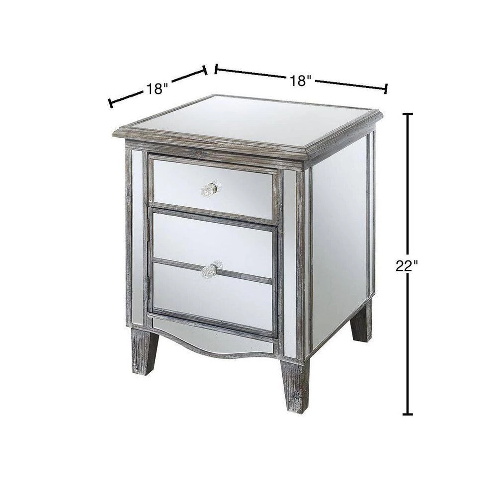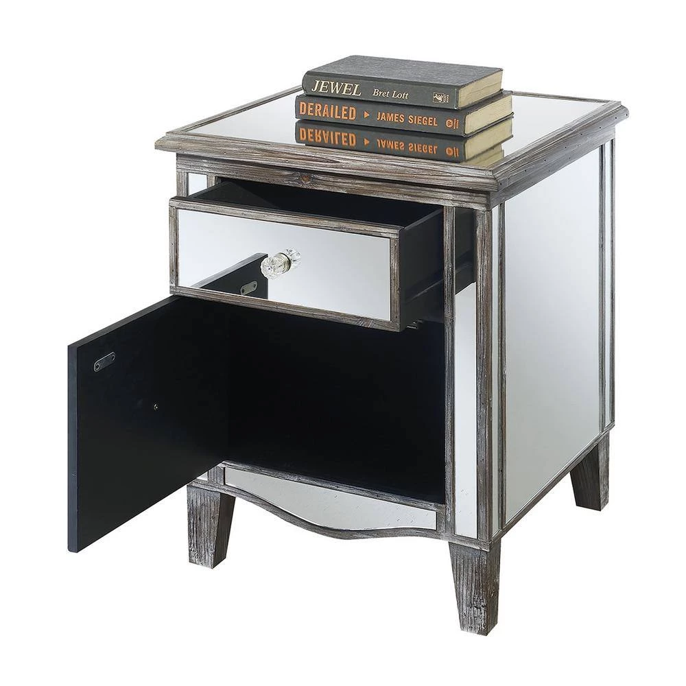 Make an elegant statement in your home with the Gold Coast Park Lane Mirrored End Table by Convenience Concepts. This multifunctional piece will brighten up your living room; home office or den with its beautiful mirror finish. Featuring a glam style; this accent unit will refresh any home decor instantly. Crafted from MDF; non lead based paint and mirror; this side table is built for longevity and easy maintenance. Featuring a pull out drawer and cabinet to optimize your storage space for all your essentials while keeping them easily accessible. The chic faux crystal rosette knobs add to its unique luxurious design. Elegantly display your favorite lamp or mementos with its mirrored finished tabletop. Enjoy this accent piece in no time with its fast and easy 3-step assembly. Available in multiple finishes to complement any home decor. Look for additional pieces from the Gold Coast Collection by Convenience Concepts. Each sold separately.