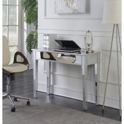 42 in. Silver Rectangular 2 -Drawer Writing Desk with Glass Mirror Inlay by Convenience Concepts