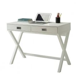 39.75 in. White Rectangular 2 -Drawer Writing Desk with X-designed Frame by Convenience Concepts
