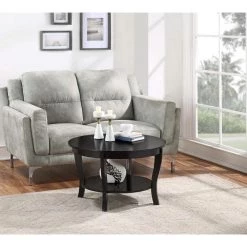 American Heritage 30 in. Black Medium Round Wood Coffee Table with Shelf by Convenience Concepts