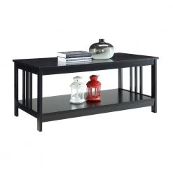 Mission 40 in. Black Medium Rectangle Wood Coffee Table with Shelf by Convenience Concepts