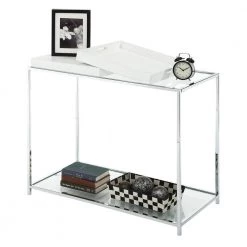 Palm Beach 35 in. White Standard Rectangle Glass Console Table with Shelves by Convenience Concepts
