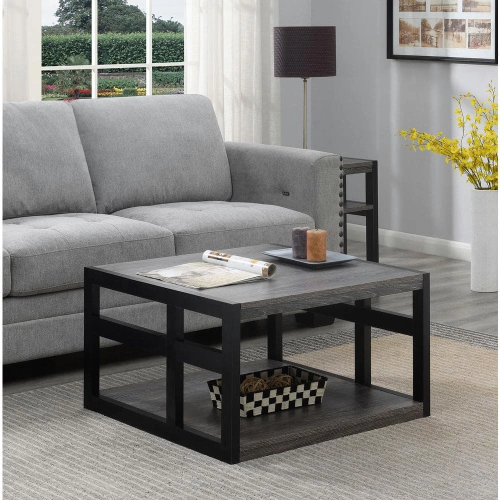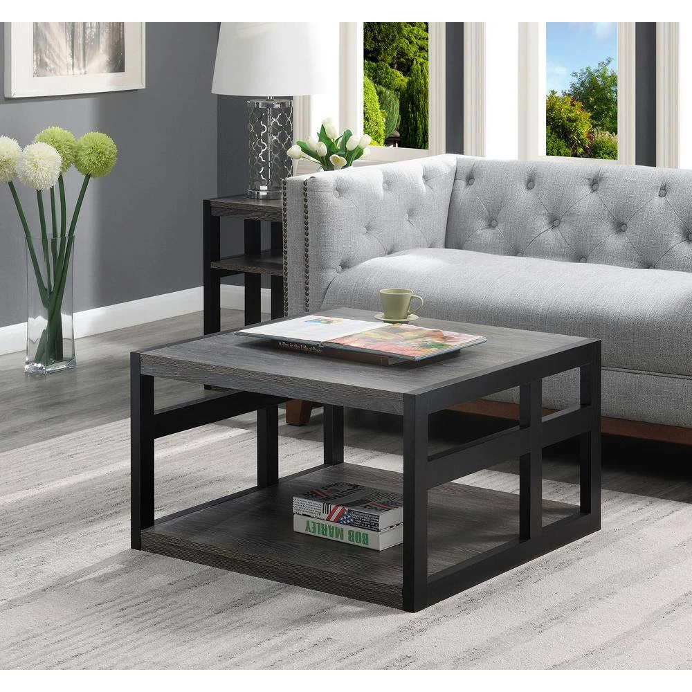 Cannot decide between eating dinner or streaming your favorite TV series. With the Monterey Square Coffee Table by Convenience Concepts; you will not have to choose. The spacious tabletop provides enough room for full meals to be enjoyed from the comfort of your living room. Not only is this piece functional but its side frame design gives it a stylish touch. With a contemporary style; this two tier unit will upgrade your home decor instantly. Keep your entertainment essentials on the bottom shelf or display your favorite collection; the possibilities are endless. Use in your den or home office and witness its limitless versatility. Crafted from particle board and finished with a rich melamine veneer; this item will beat the test of time. Enjoy right after delivery with its clear and simple assembly requiring just 4-steps. Love this coffee table. Complete the look with the Monterey 3-Tier End Table and the Monterey Console Table by Convenience Concepts. Each sold separately.