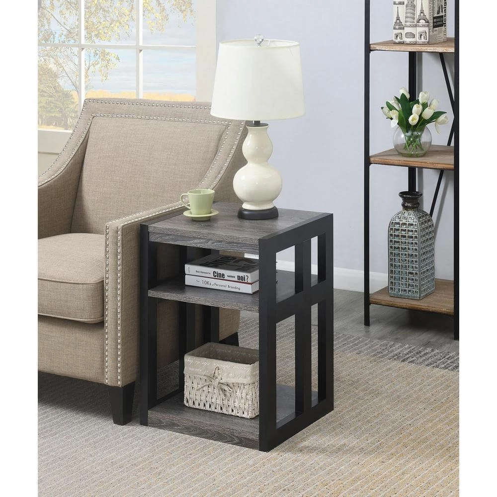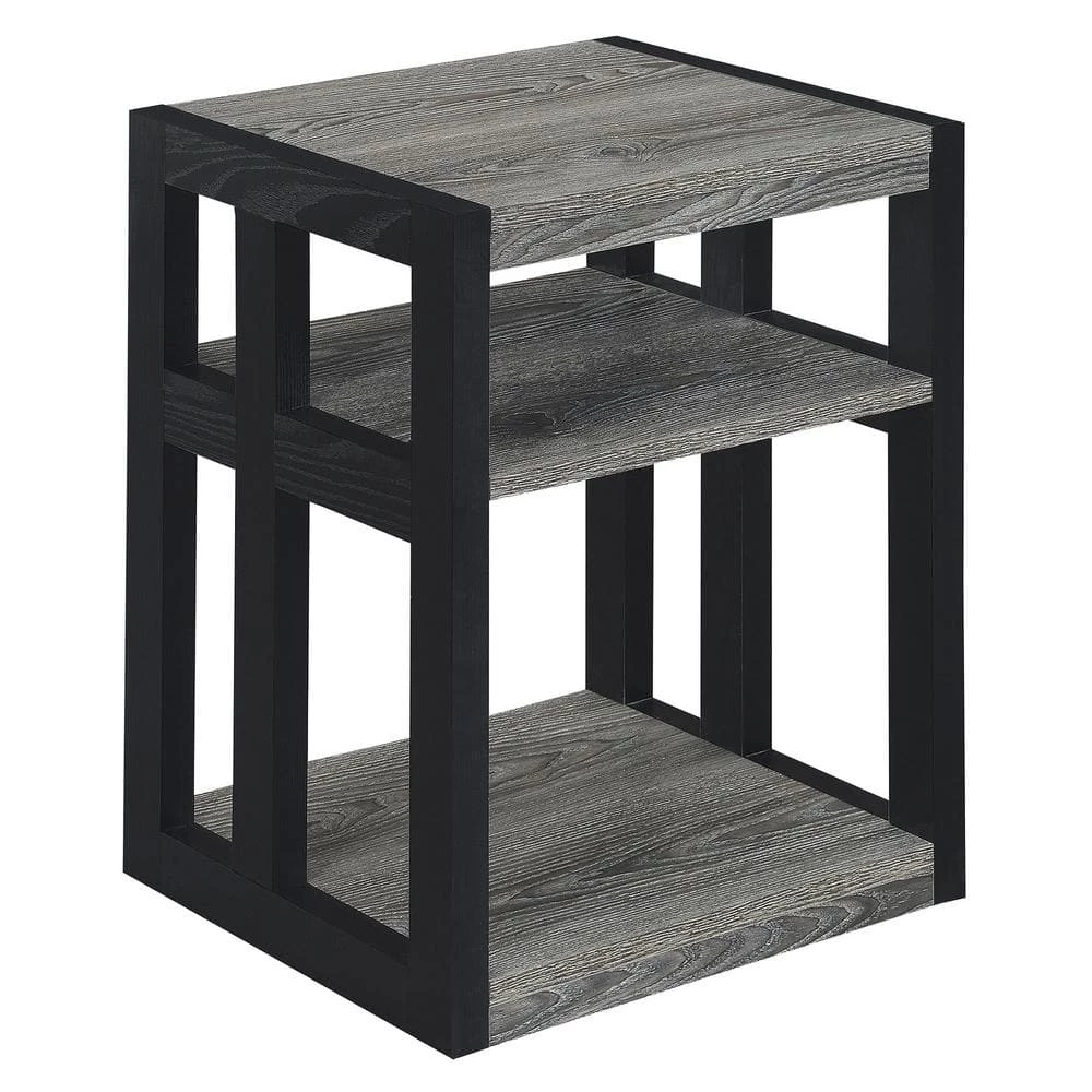 With a clean line silhouette; the Monterey 3-Tier End Table by Convenience Concepts is the perfect addition to your living space. Its stylish contemporary design will refresh your home decor. With three tiers; this unit will optimize both your storage and display space. Its tiers are ample enough for your favorite lamp; a book and a woven storage basket to keep all your living room essentials within reach. Fashioned from particle board and finished with a rich melamine veneer; makes it easy to maintain and long lasting. Its unique side frame design makes this item a must have piece. Do not wait. Bring home this beautiful accent table today. The clear and simple assembly instructions only require a total of 4-steps; making sure you enjoy this furniture just minutes after delivery. Love this design. Complete the look with the Monterey Square Coffee Table and the Monterey Console Table by Convenience Concepts. Each sold separately.