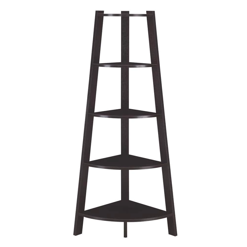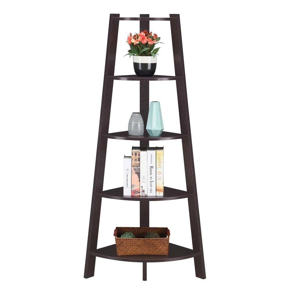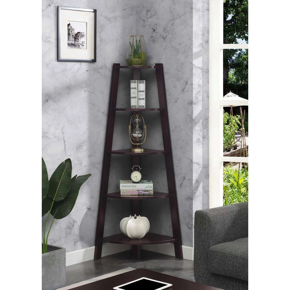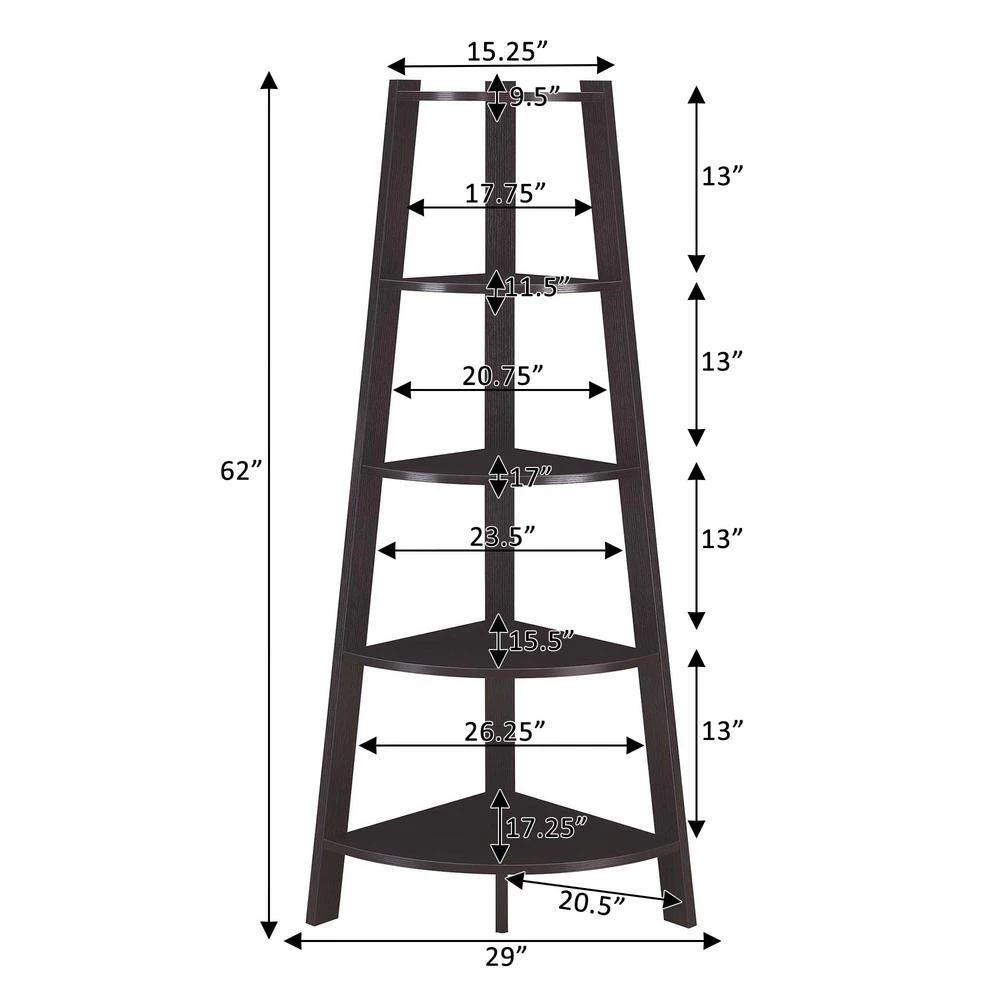 Simply add style to any empty corner with the Newport 5-Tier Wide Corner Bookshelf by Convenience Concepts. Transform any corner in your home with 5-tiers of wide shelving offering plenty of room for books; collectibles; and decor. This farmhouse style storage unit offers limitless versatility and can be used in any room; even a home office or dining room. The shelves are crafted from MDF and finished with a rich paper melamine veneer; making this item easy to maintain. The sturdy X-shaped frame of this bookshelf is engineered from particleboard and finished with smooth melamine. Pair with additional pieces from the Newport Collection by Convenience Concepts; each sold separately.