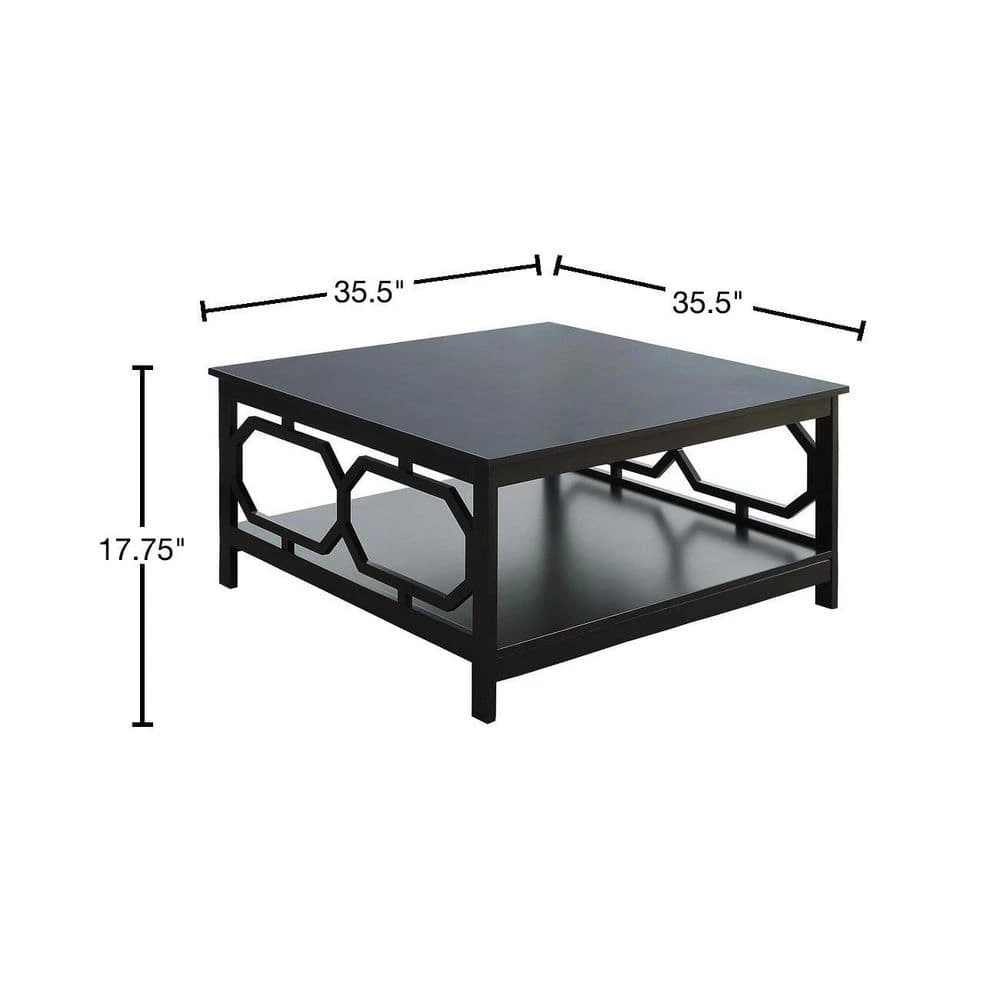Reinvent your living room with the Omega Square 36 Coffee Table. The simple yet eye-catching design showcases clean lines and beautiful octagon cut outs on the sides. Available in multiple finishes it’s sure to complement any home decor. Featuring a large table top surface and a lower shelf that provides usable display space. Engineered for durability this piece will become a staple in your home. Look for other items from the Omega Collection for the complete look sold separately.