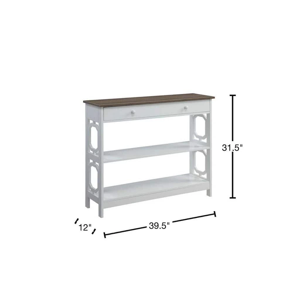 Give your home a handsome makeover with the Omega 1 Drawer Console Table. Featuring a bottom and middle shelf as well as a drawer for concealed storage you can display collectibles and hide away unsightly accessories. The geometric pattern creates a modern appeal with clean lines. Crafted to last, the Omega 1 Drawer Console Table will quickly become a staple in your home. Also available in multiple finishes it will easily complement any decor. Look for other items from the Omega Collection for the complete look, sold separately.