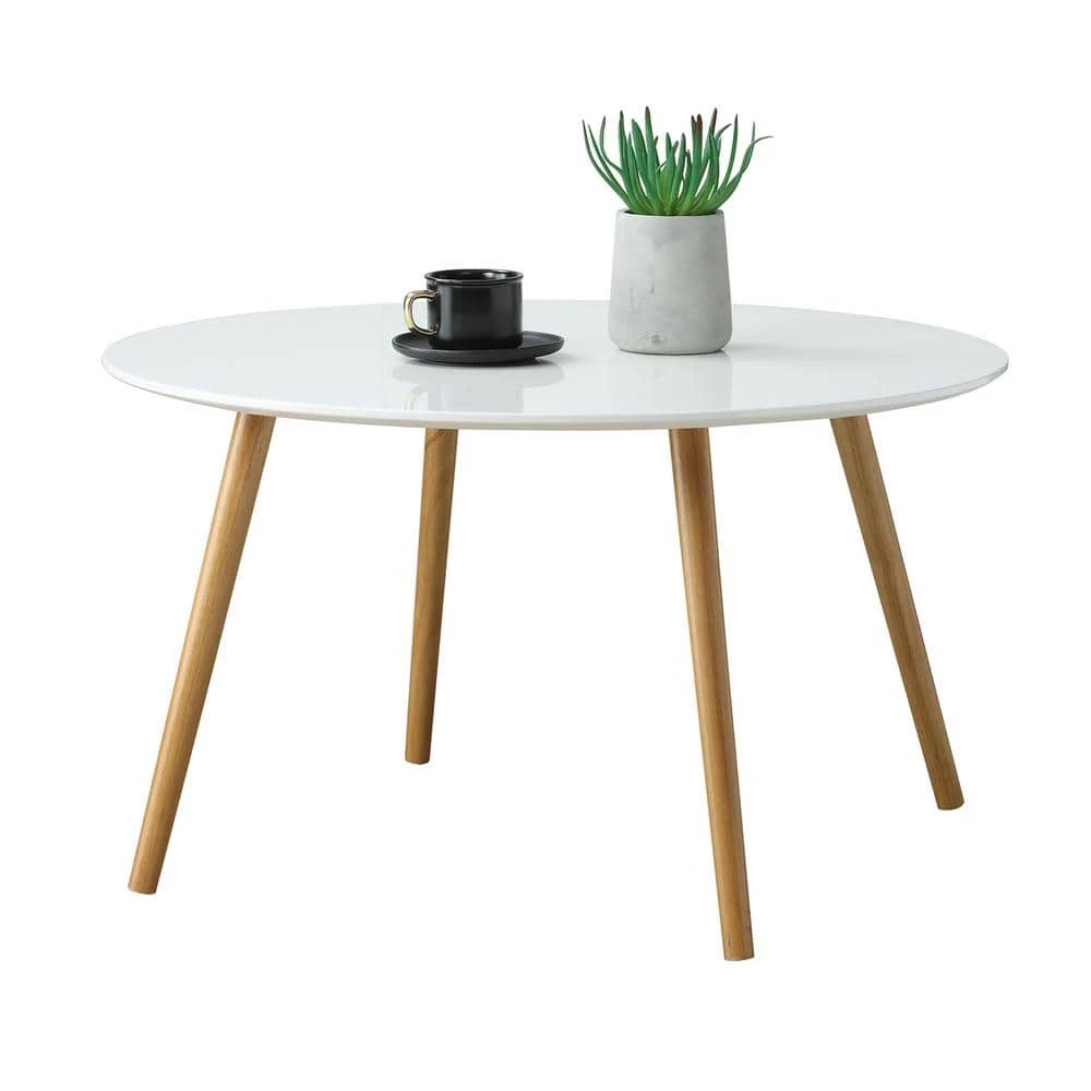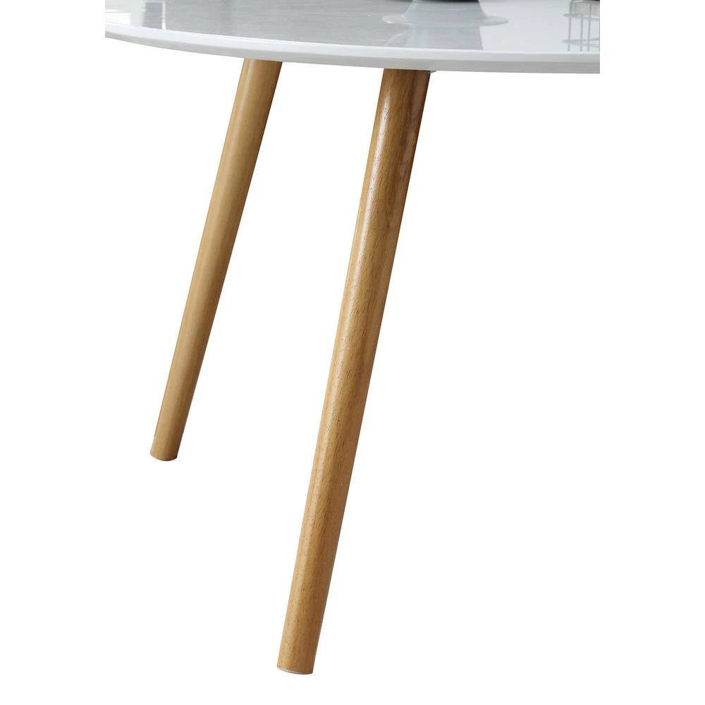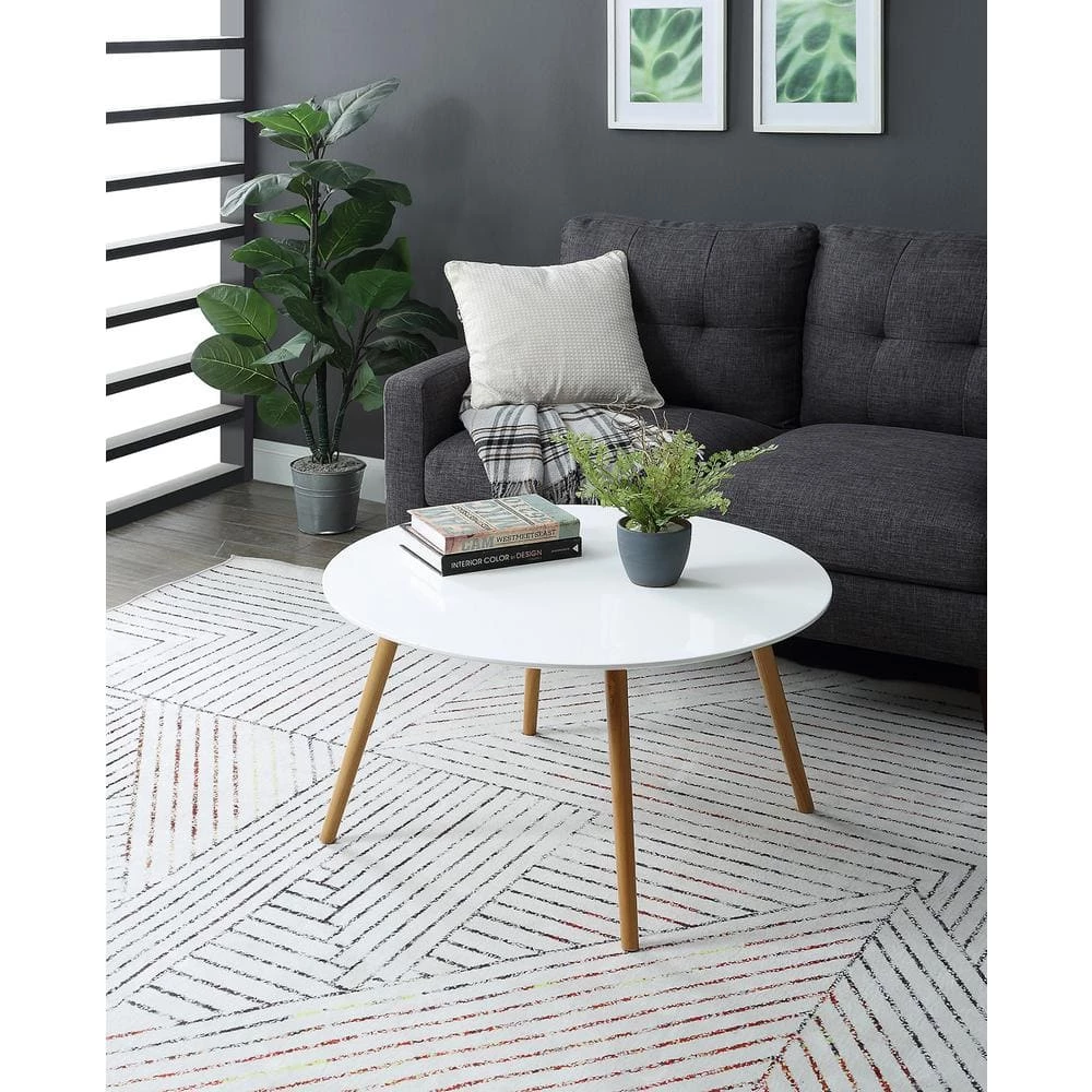 Brimming with retro charm, the Oslo Round Coffee Table from Convenience Concepts is the perfect addition to your home. With a minimalist mid century modern style, this table will update your decor. Its simplistic Scandinavian design and two-toned finish will create an airy feel to any room in your house while optimizing your surface space. Featuring a large round table top finished with a high gloss piano finish and four tapered legs made of solid wood, this table is built for longevity and easy maintenance while also being perfect to exhibit your favorite collectibles. Enjoy in no time with its easy assembly requiring only 2 easy steps. Look for more items from the Oslo Collection from Convenience Concepts, each sold separately.