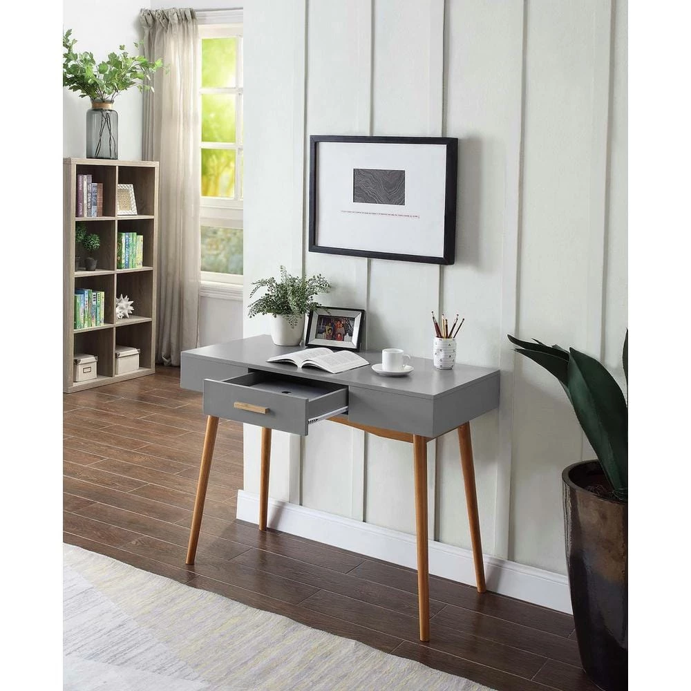 Inspired by Mid Century styling the Oslo 1-Drawer Desk will transform your space. This desk is available in multiple finishes from beautiful high gloss piano finishes to lovely woodgrain finishes so you’ll be sure to find the right finish for your decor. Crafted with solid wood legs and wood particles as well as bamboo for the drawer handle this piece combines durability with functionality. The drawer allows for hidden storage where you can hide away any unnecessary or unused office supplies. Look for other items from the Oslo Collection for the complete look sold separately.