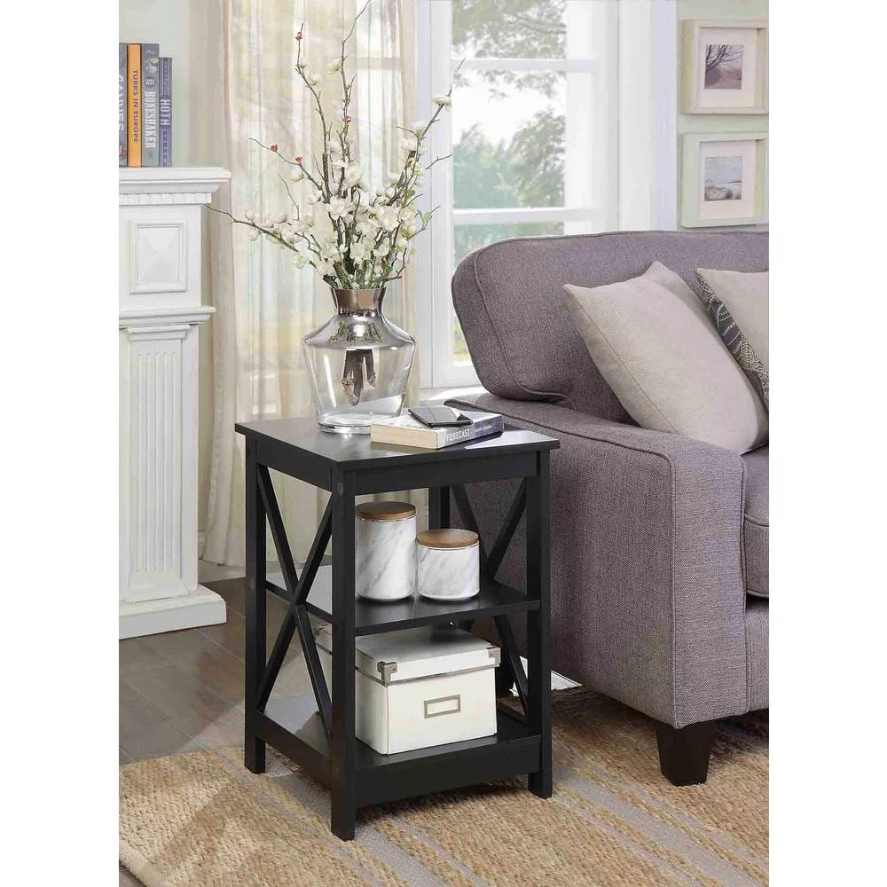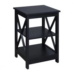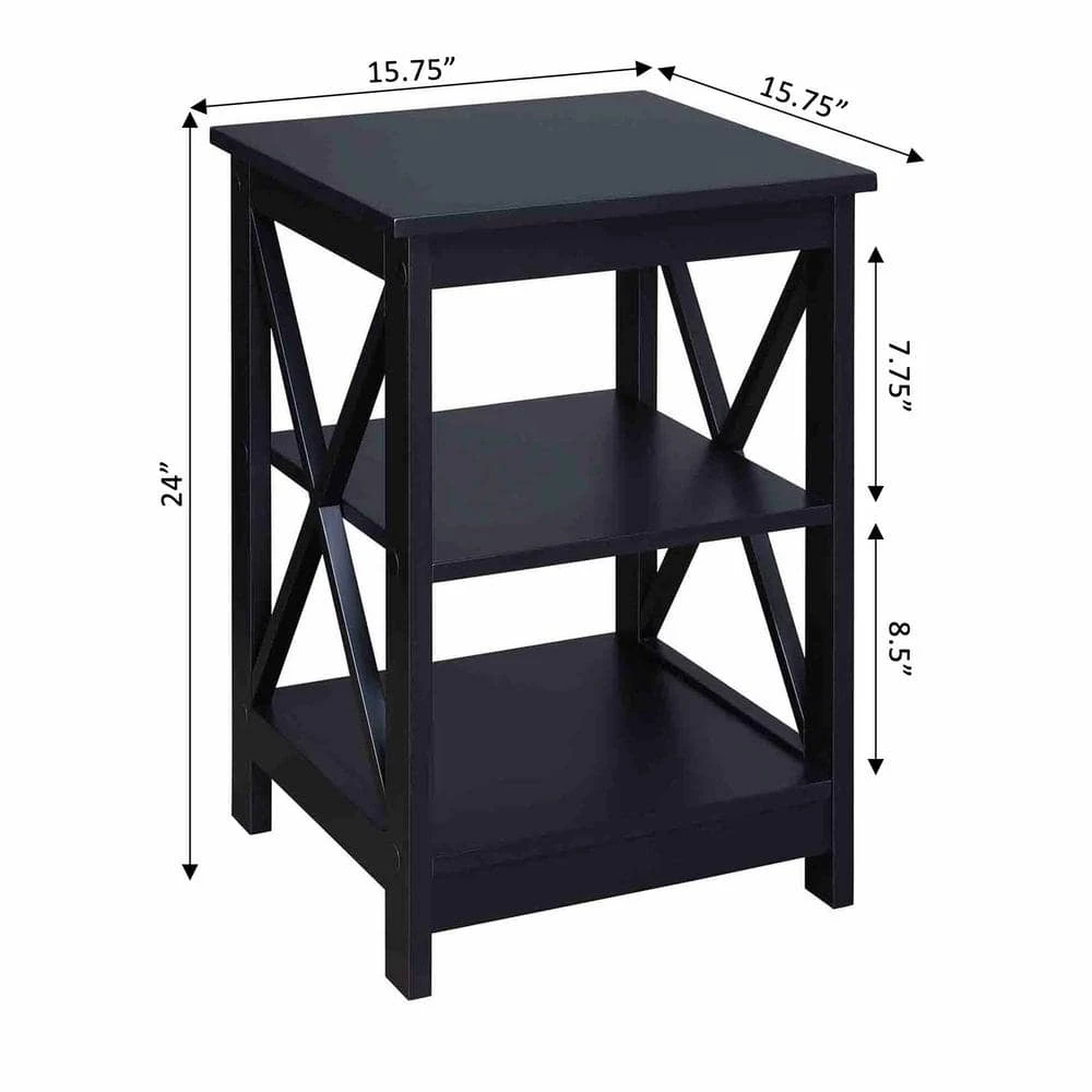 Create a welcoming yet stylish home environment with the Oxford End Table with Shelves from Convenience Concepts. This chic transitional side table is just what you were looking for to renovate any living space. Available in multiple finishes, the Oxford End Table with Shelves will complement existing home furnishings while still offering a fresh new look. Three tiers of open concept shelving are accompanied by beautiful X frame side panels that will complete any coastal or farmhouse themed decorated space. Plenty of room is available to display decorative pieces or to keep family room essentials close at hand thanks to three spacious shelves. Built from sturdy MDF and carefully painted with non-lead-based paint, this table is built to last. Coordinate this table with additional pieces from the Oxford Collection by Convenience Concepts, each sold separately.