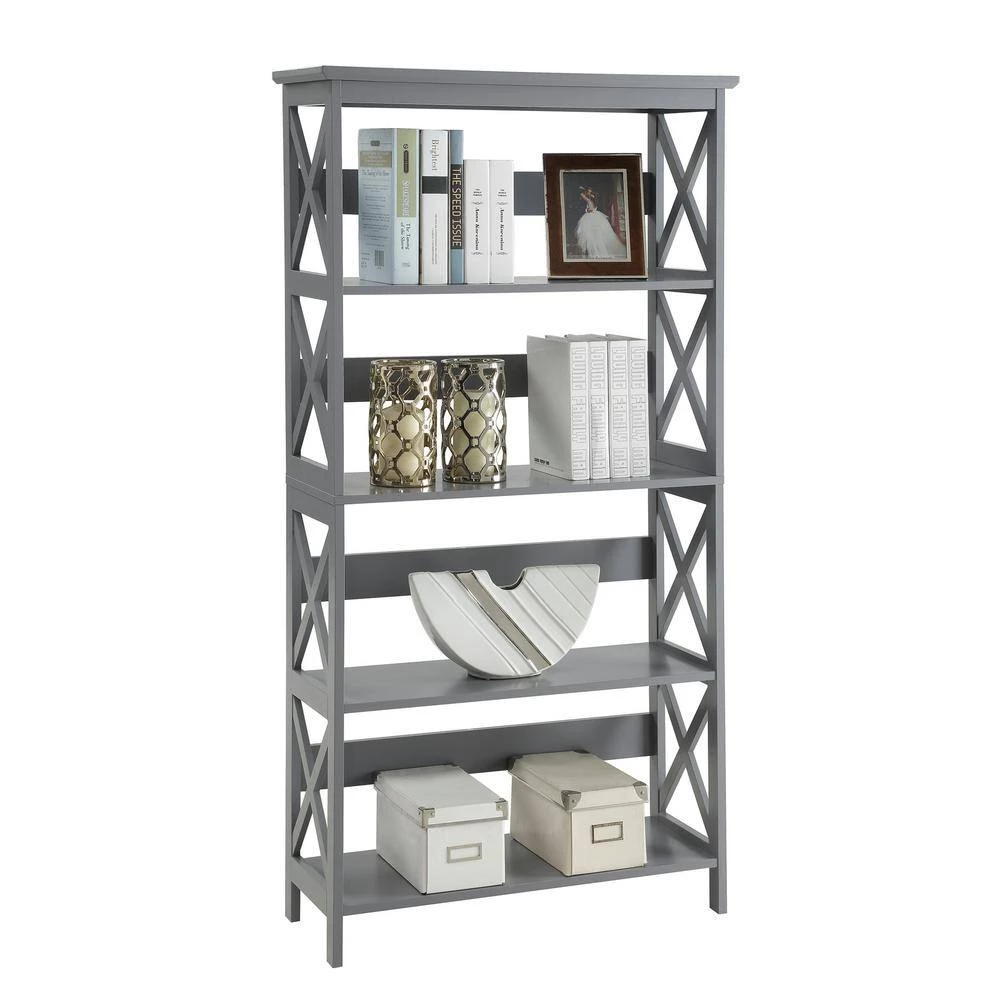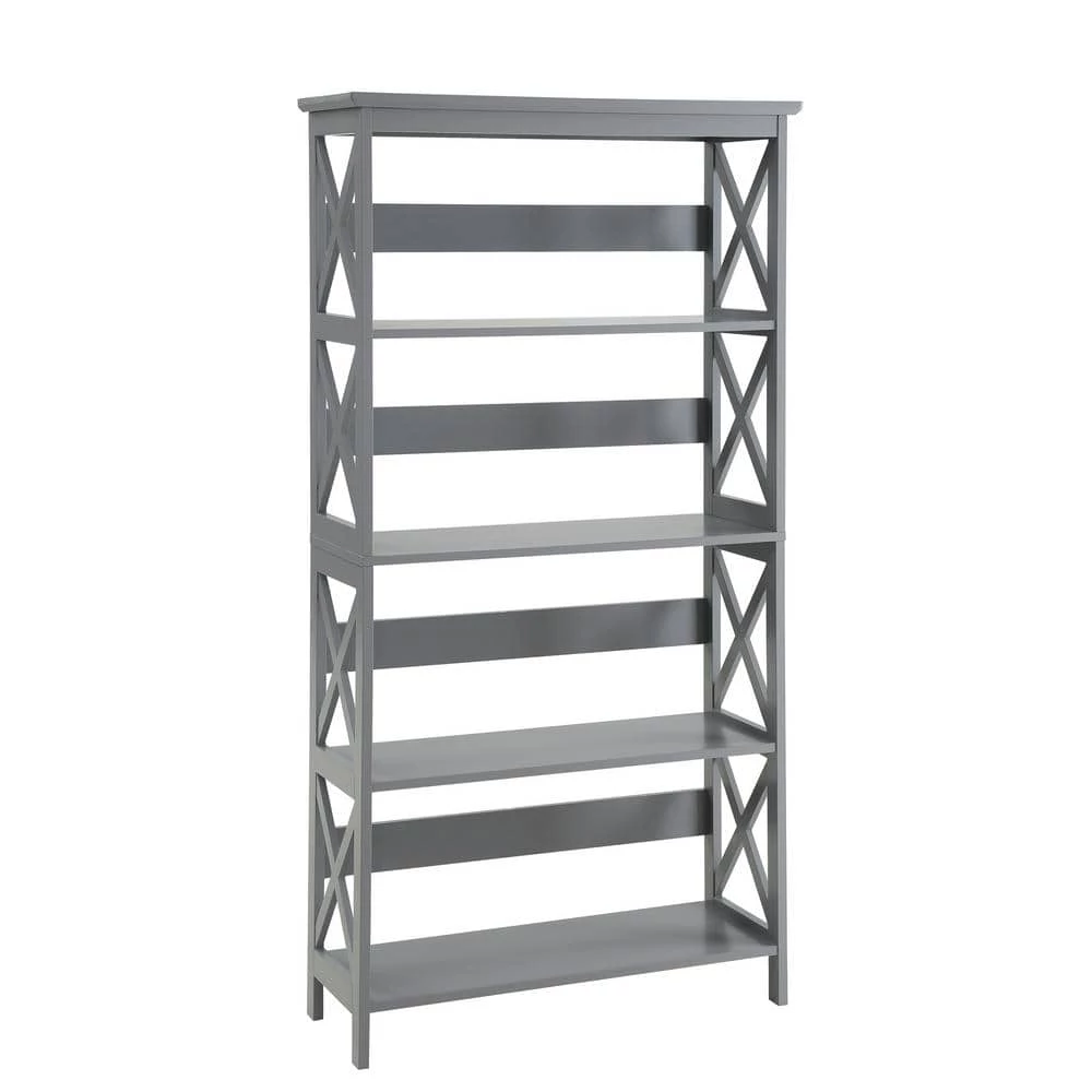 Give your home a handsome makeover with the Oxford 5-Tier Bookcase. Featuring 5-spacious shelves where you can display books and collectibles. The X-pattern creates a modern appeal with clean lines. Crafted with style and functionality in mind the Oxford 5-Tier bookcase will become a staple in your home. Also available in multiple finishes this piece will easily complement any home decor. Look for other items from the Oxford Collection for the complete look sold separately.