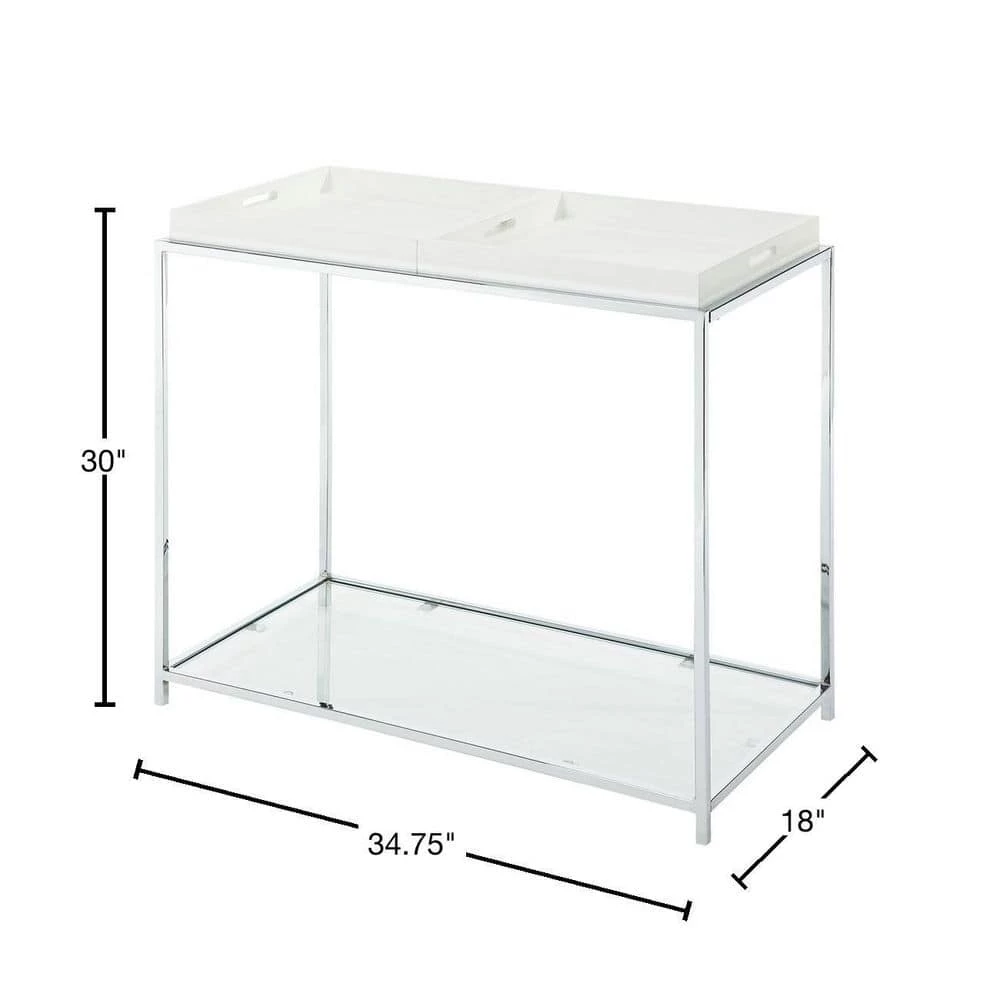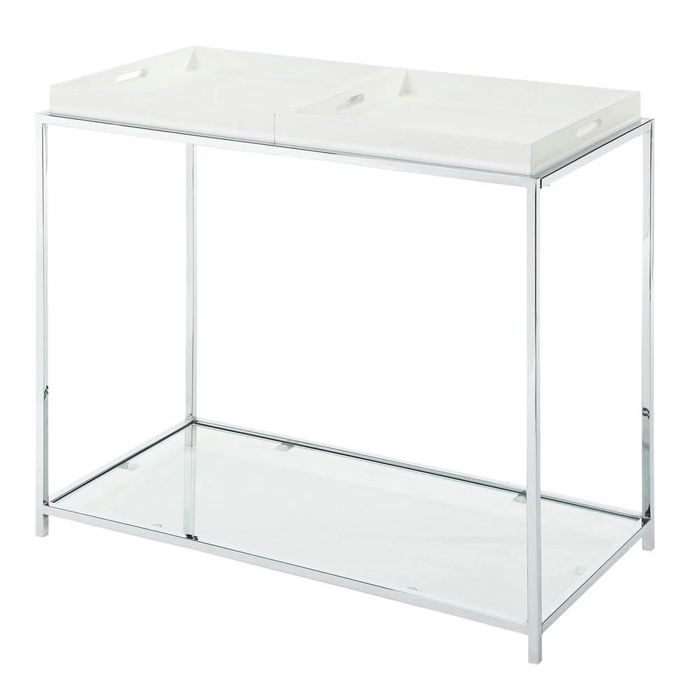 Exciting new design from Convenience Concepts. Inc. that combines urban design and multi-function use. The Palm Beach Console Table features two removable trays that can be reversed to use as a flat surface, or as serving trays. Clear tempered glass table top allows use of console table with, or without trays.