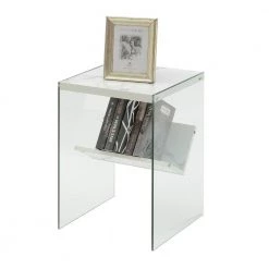 SoHo 40.75 in. H White Faux Marble/Glass 4-Shelf Accent Tower Bookcase by Convenience Concepts