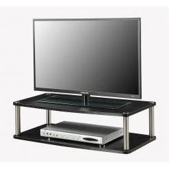 59 in. Black and Cherry Wood Particle Board TV Stand 60 in. with Doors by Convenience Concepts