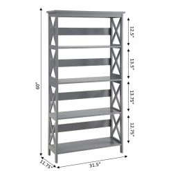 Oxford 60 in. Gray MDF 5-Shelf Standard Bookcase with Open Back by Convenience Concepts