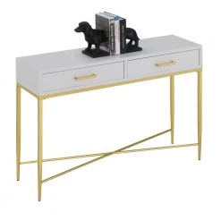 Brookline 42 in. Gray Large Rectangle Wood Coffee Table with Shelf by Convenience Concepts