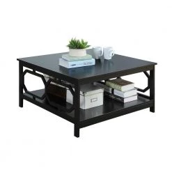 Tucson 42 in. Black Large Rectangle Wood Coffee Table with Shelf by Convenience Concepts