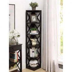 Oxford 5-Tier 12 in. Black Shelf X Frame Home Corner Bookcase by Convenience Concepts