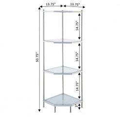 Royal Crest 50.75 in. Chrome Glass 4-Shelf Corner Bookcase by Convenience Concepts