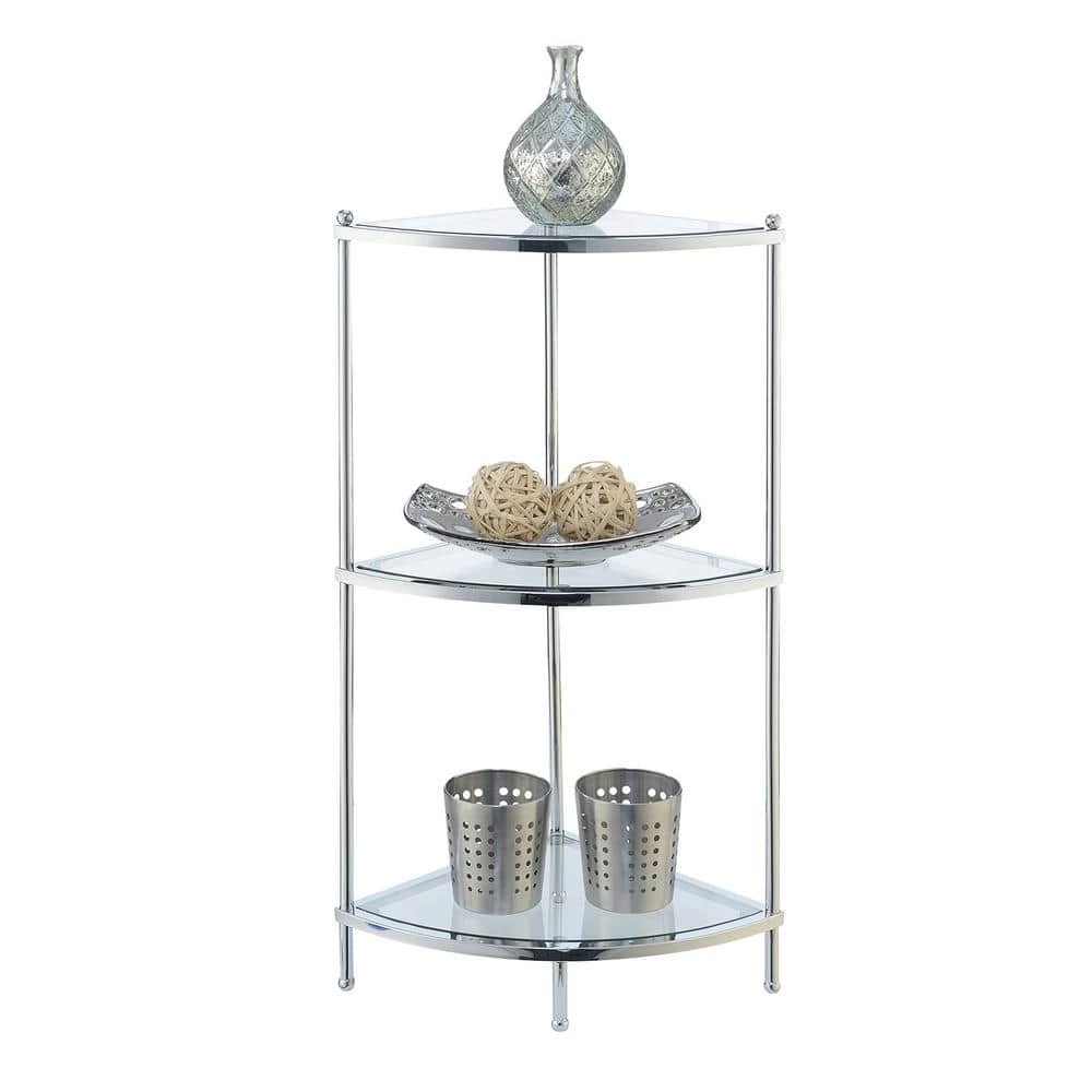 Enhance your living room or office decor.with the Royal Crest 3-Tier Glass Corner Shelf by Convenience Concepts. The Chrome frame provides the durability you need while giving the contemporary look you want. Also featuring 3 tiers of glass shelves that provide plenty of space to display collectibles, or additional storage. Coordinating items available, sold separately.