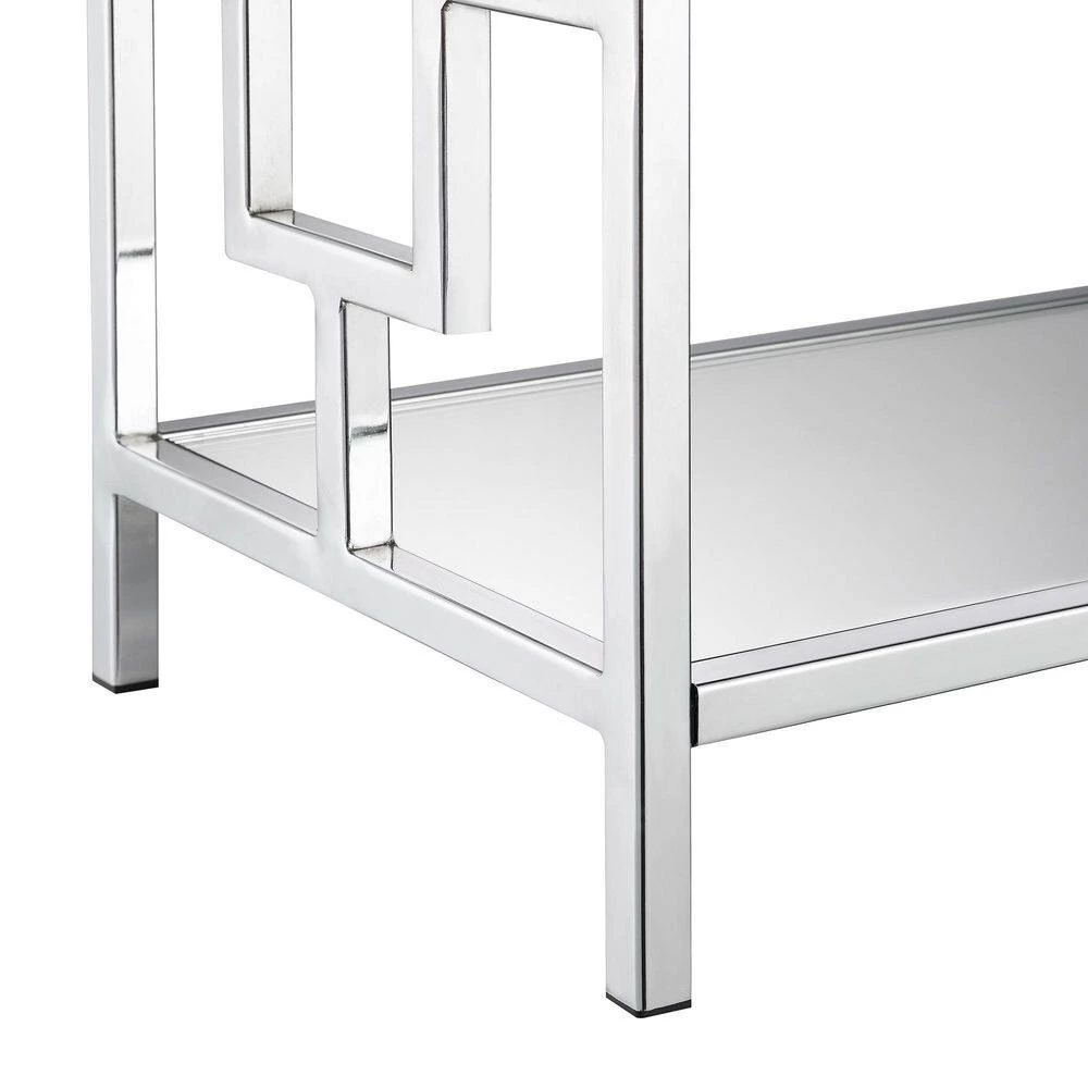 - Crafted with Tempered Glass, Mirror Glass, and Chrome Metal