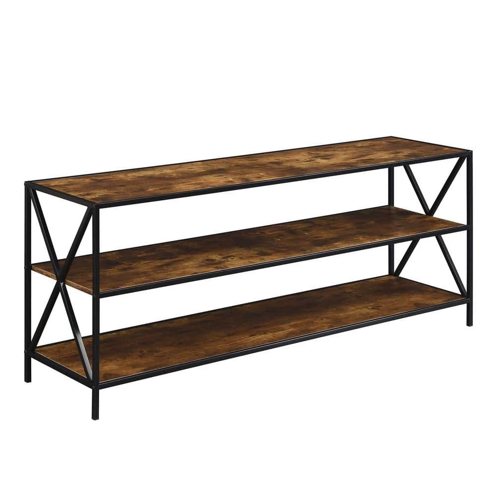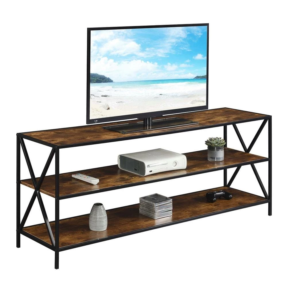 Add the Tucson 60 in. TV Stand with Shelves by Convenience Concepts to your modern home. This Tv stand offers all the space one may need for a large TV; entertainment essentials; and home decorative pieces. With three tiers of shelving each offering 60 in. of space; storage and display options are endless. This sturdy unit is built from particleboard; powder-coated metal; and finished with a smooth melamine veneer. Shop the wide selection of beautifully crafted pieces from the Tucson Collection; each sold separately.