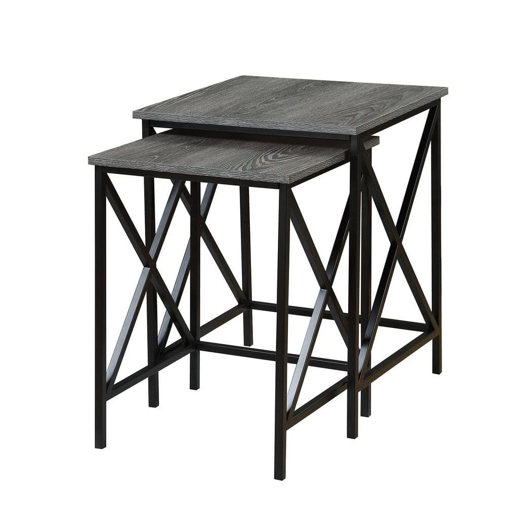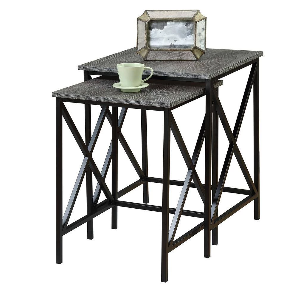 The Tucson Nesting End Tables by Convenience Concepts is a great space saving option for any home, while not compromising on style. This set of 2 offers a ton of versatility and functionality. Perfectly nested together, you can use the smaller table as an extended surface and tuck it away when youre done or use it as a completely separate unit. Featuring a powder coated metal X frame, you can be assured that this set is stable and durable. The beautiful wood grain surface offers plenty of space to place your belongings and also provides a contrasting color that matches perfectly with the black frame. Available in multiple finishes, the Tucson Nesting End Tables will complement any dcor. Look for additional items from the Tucson Collection by Convenience Concepts, sold separately.